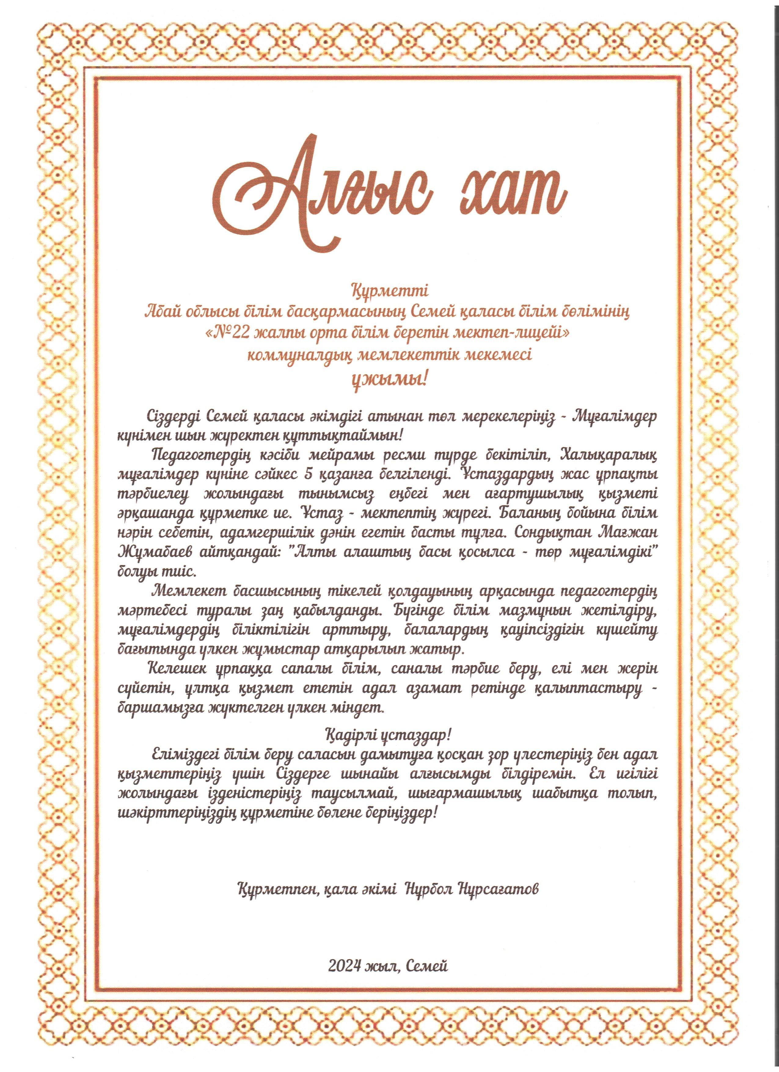Алғыс хат » Средняя общеобразовательная школа № 22