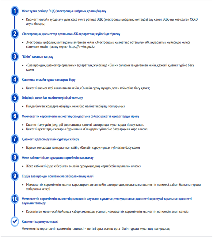Негізгі орта, жалпы орта білім беру туралы құжаттардың телнұсқаларын беру
