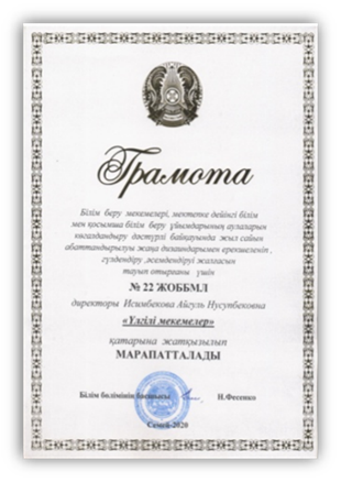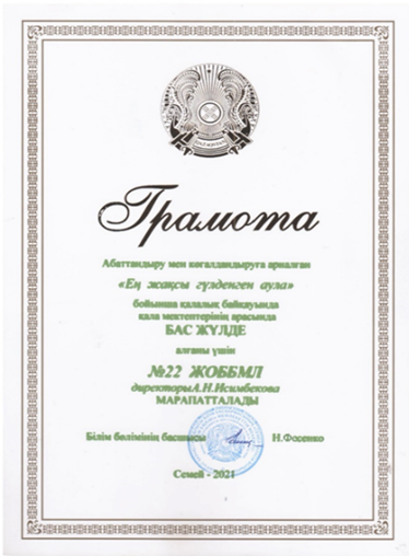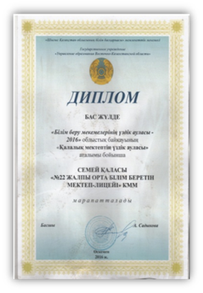 №22 мектеп-лицей мектеп аулаларын кешенді абаттандыру мен білім беру ұйымдарының оқу-тәжірибе үлескісі бойынша жылма-жыл өтетін қалалық байқаулардан «Қалалық мектептің үздік ауласы», «Үлгілі мекемелер», «Ең жақсы гүлденген аула» сынды аталым бойынша БАС ЖҮЛДЕНІ иеленуде.