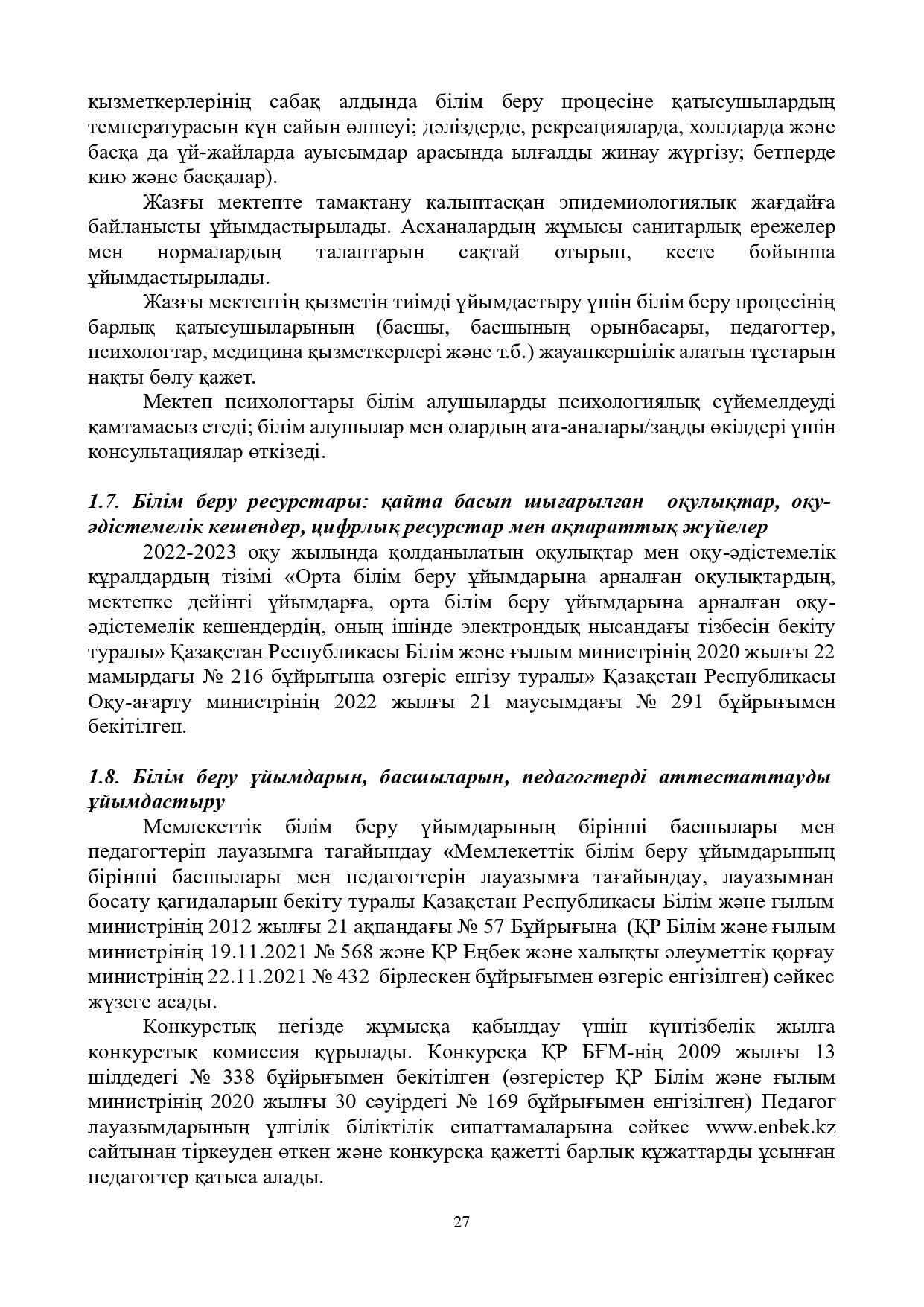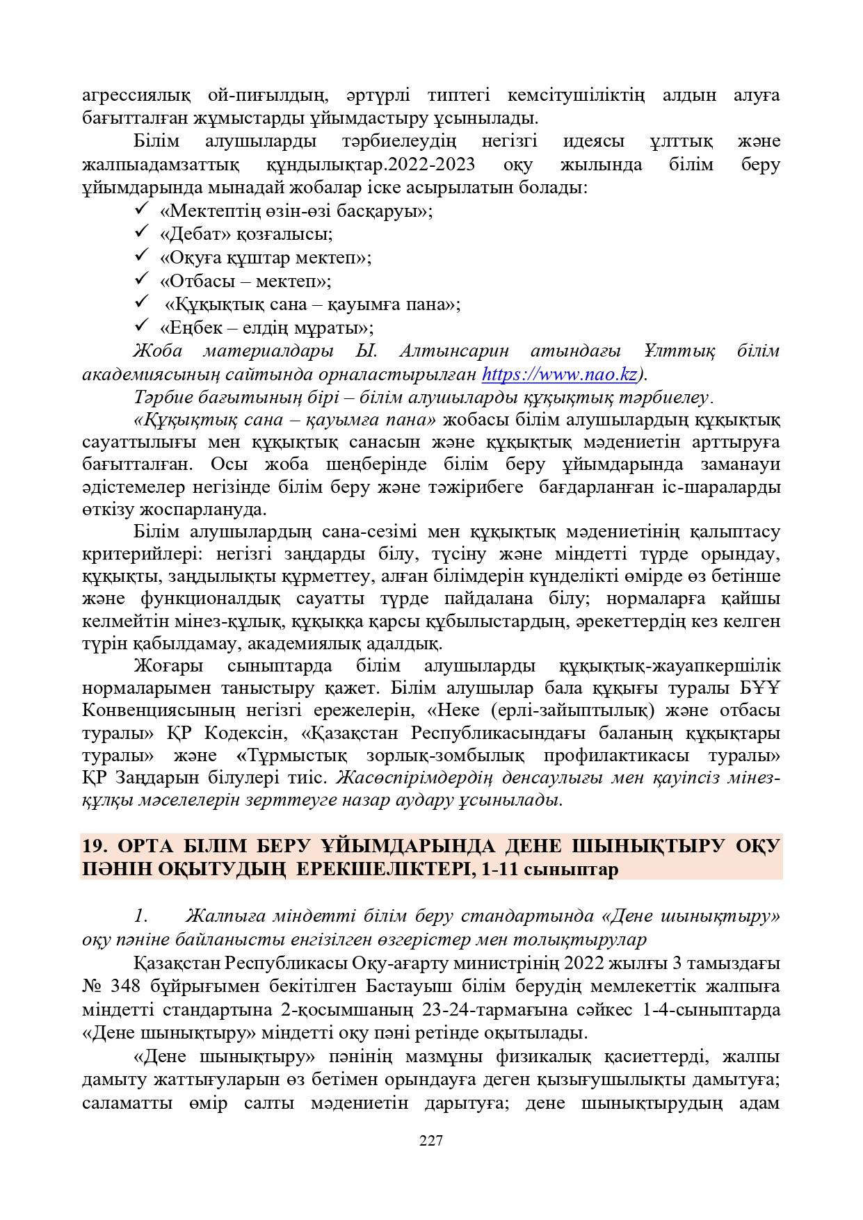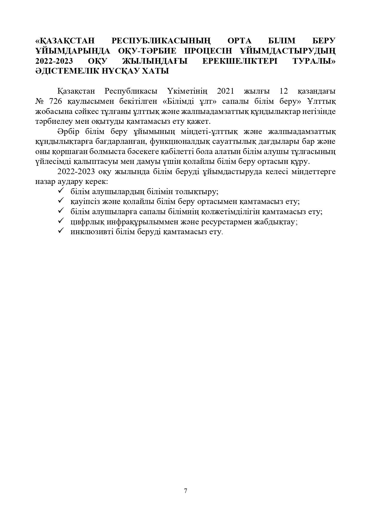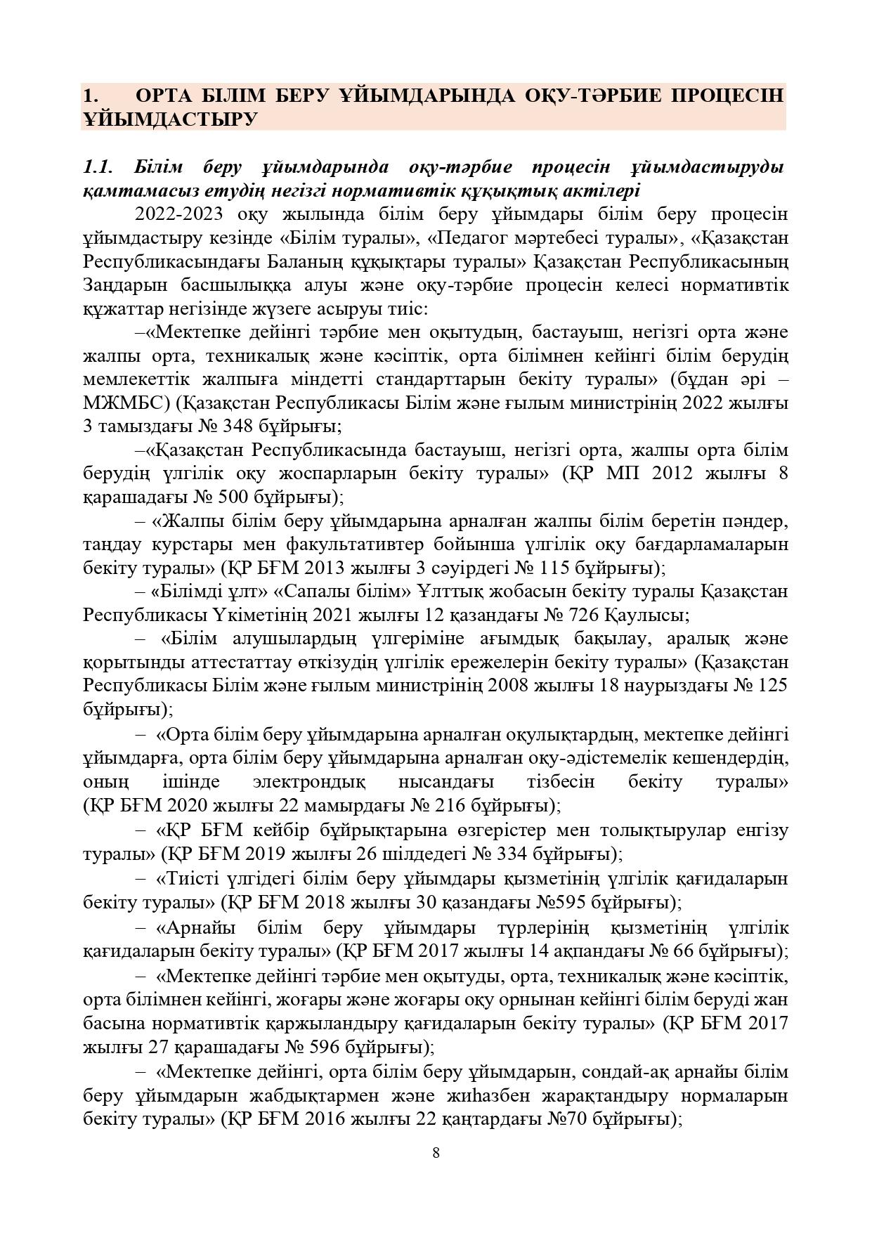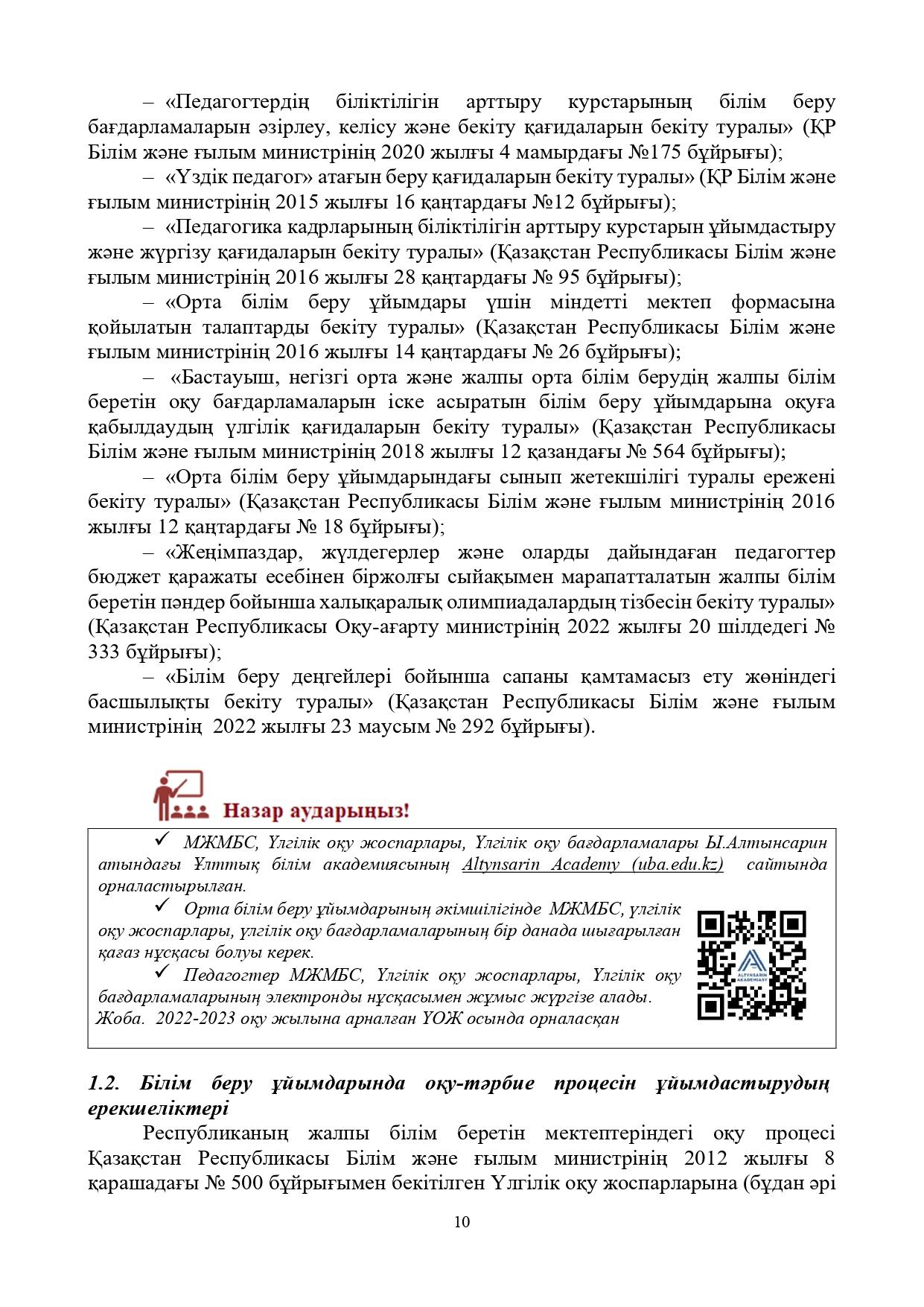 Қазақстан Республикасының Оқу-ағарту министрлігі Ы. Алтынсарин атындағы Ұлттық білім академиясы «2022-2023 ОҚУ ЖЫЛЫНДА ҚАЗАҚСТАН РЕСПУБЛИКАСЫНЫҢ ОРТА БІЛІМ БЕРУ ҰЙЫМДАРЫНДА ОҚУ-ТӘРБИЕ ПРОЦЕСІН ҰЙЫМДАСТЫРУДЫҢ ЕРЕКШЕЛІКТЕРІ ТУРАЛЫ» https://22-semey.edu.kz/o-detskom-sade/normativtk-zhattar/369-azastan-respublikasyny-ou-aartu-ministrlg-y-altynsarin-atynday-ltty-blm-akademijasy-2022-2023-ou-zhylynda-azastan-respublikasyny-orta-blm-beru-jymdarynda-ou-trbie-procesn-jymdastyrudy-ereksh.html https://22-semey.edu.kz/o-detskom-sade/normativtk-zhattar/369-azastan-respublikasyny-ou-aartu-ministrlg-y-altynsarin-atynday-ltty-blm-akademijasy-2022-2023-ou-zhylynda-azastan-respublikasyny-orta-blm-beru-jymdarynda-ou-trbie-procesn-jymdastyrudy-ereksh.html