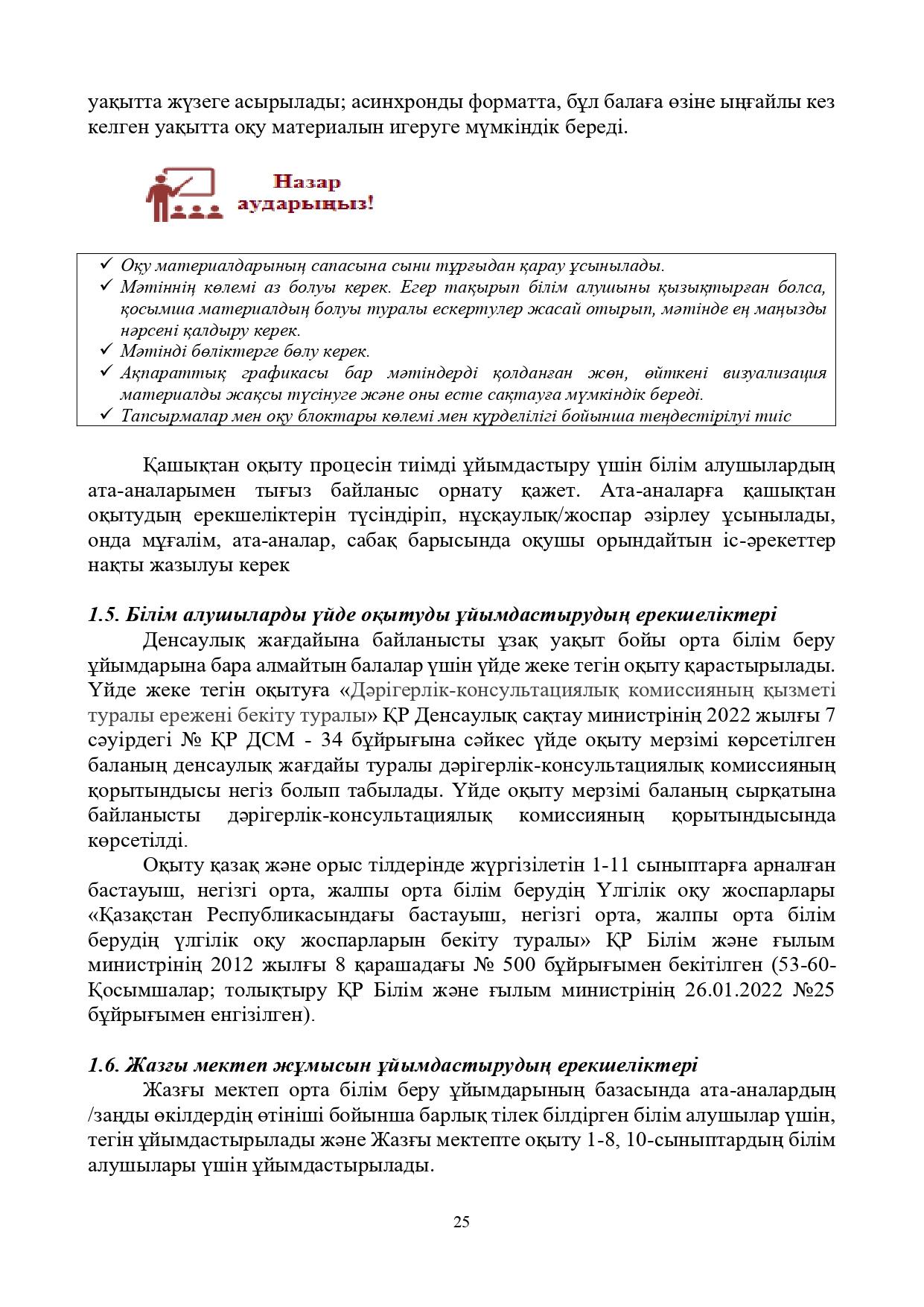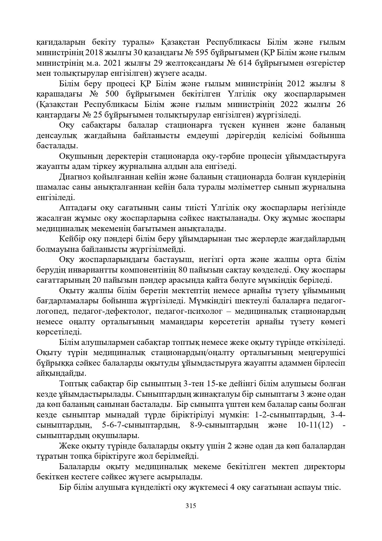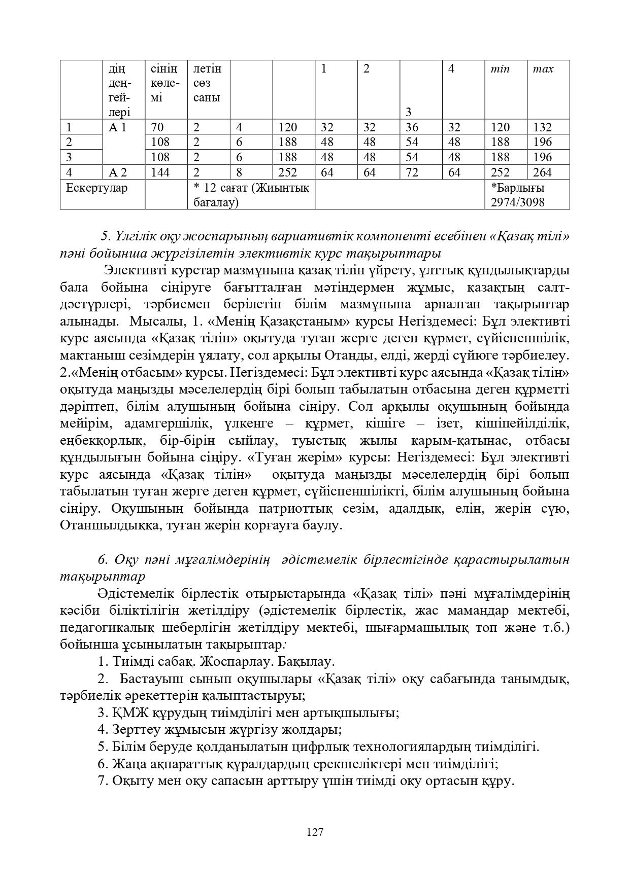 5) 25 сағат – арнайы білім беру ұйымдарының және жетім балалар мен ата-анасының қамқорлығынсыз қалған балаларға арналған білім беру ұйымдарының тәрбиешілері үшін белгіленеді.