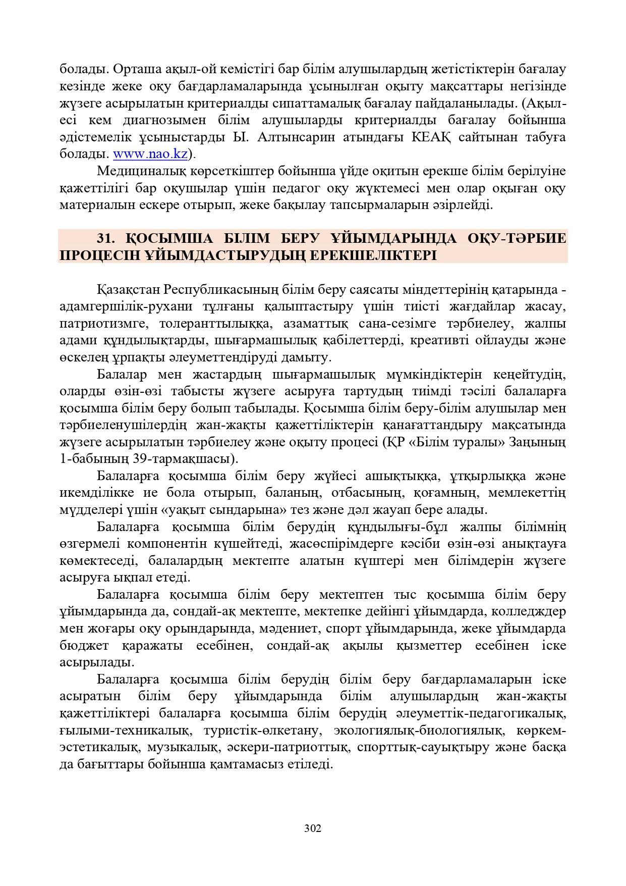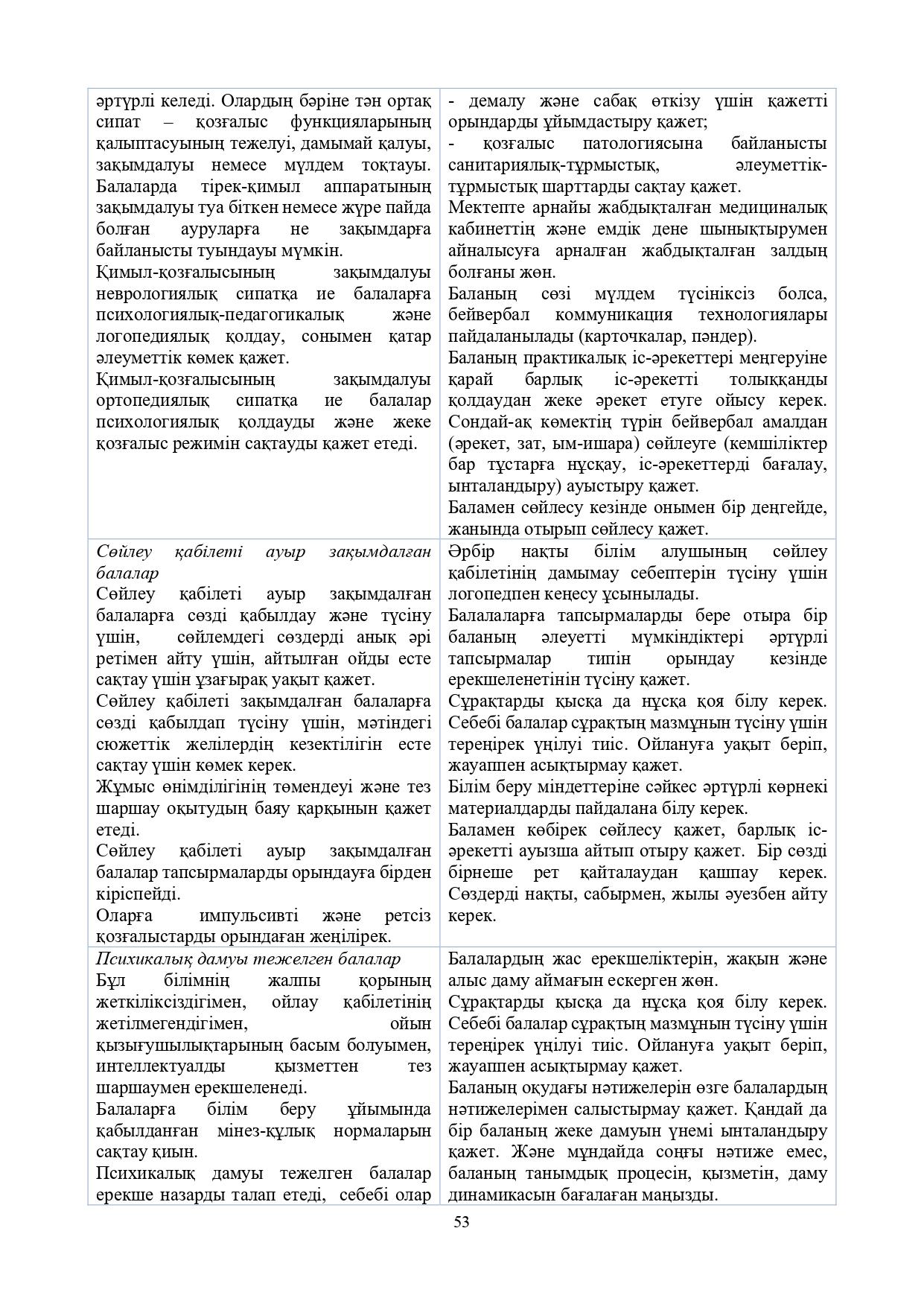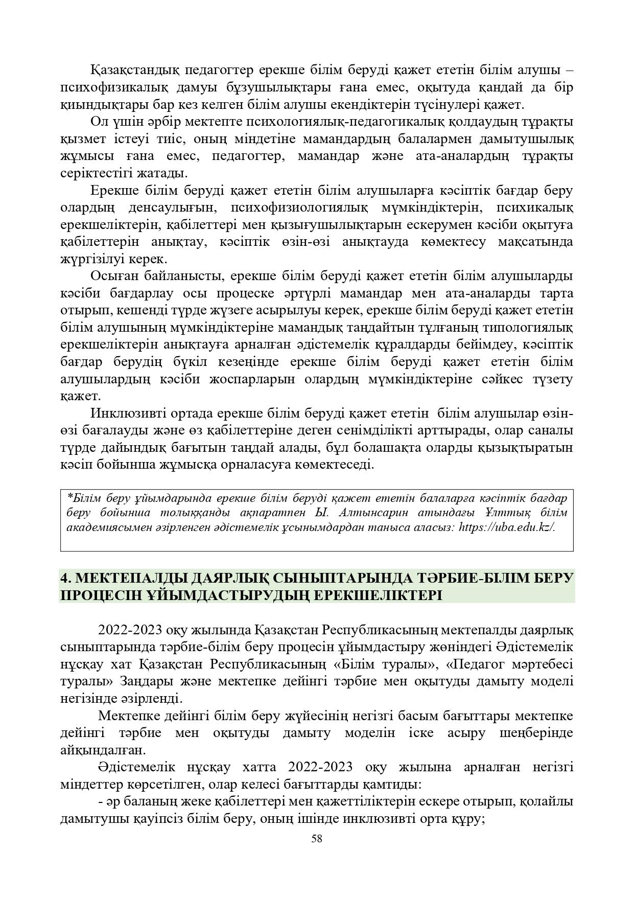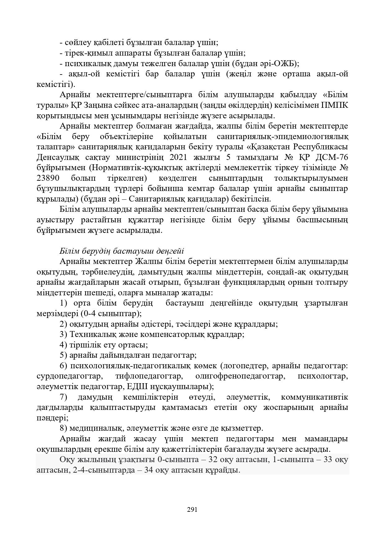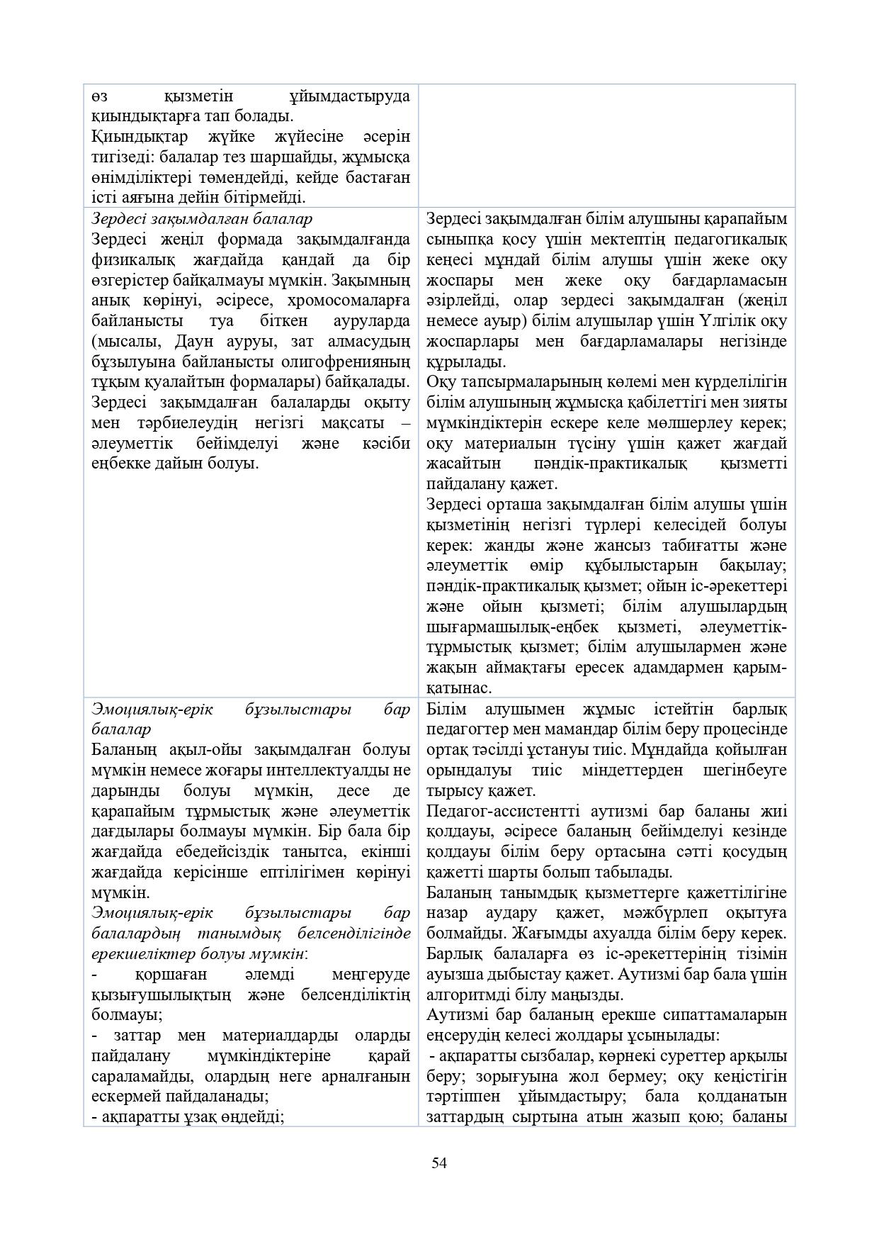 мамандандырылған және арнаулы білім беру ұйымдары үшін;