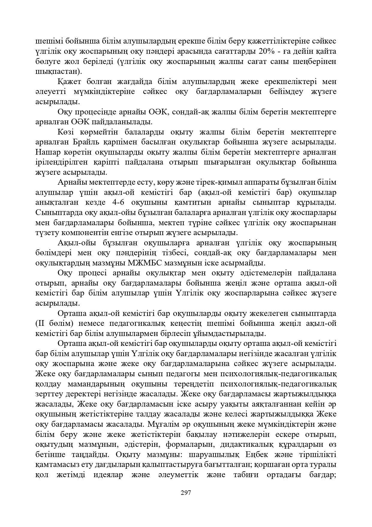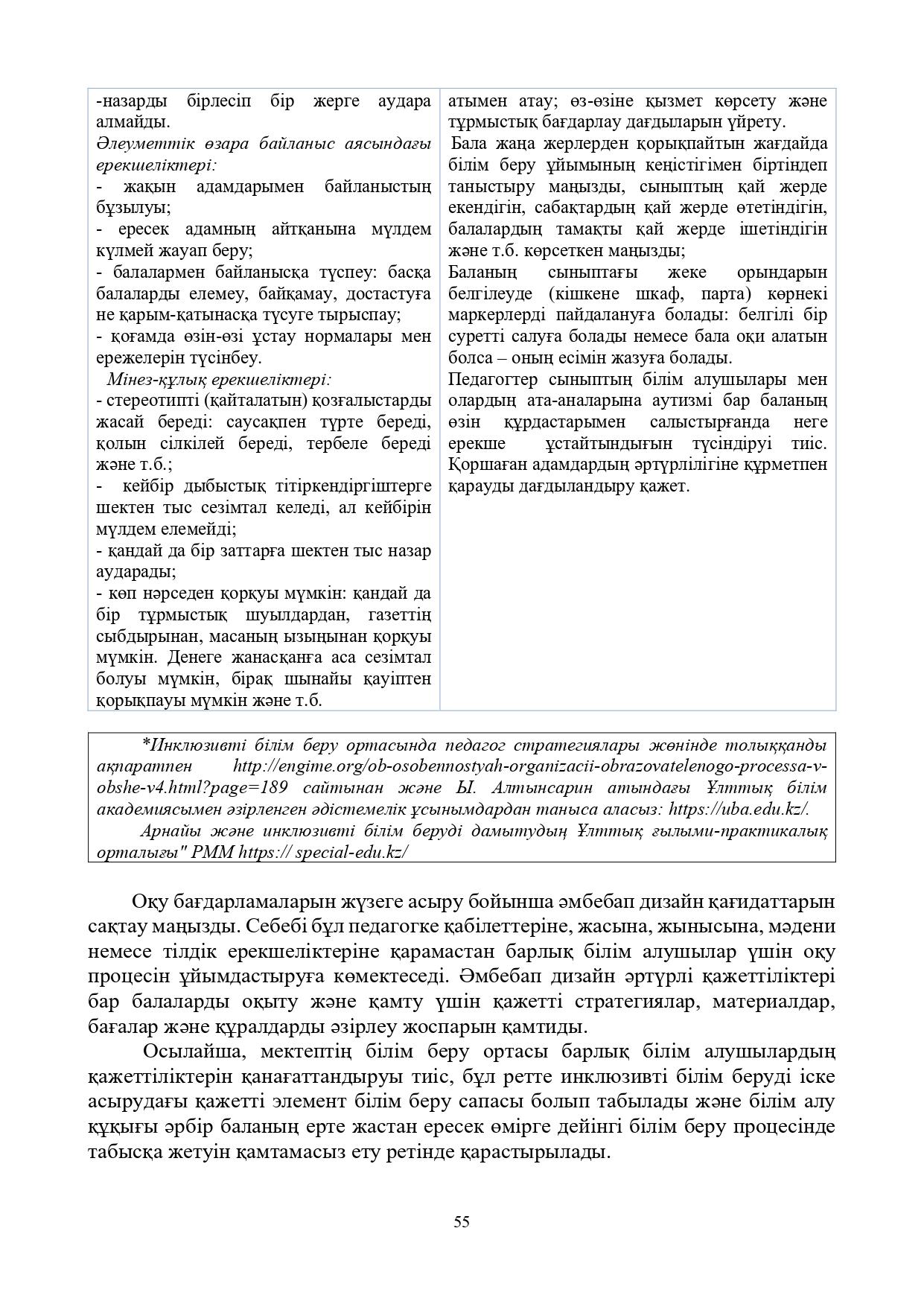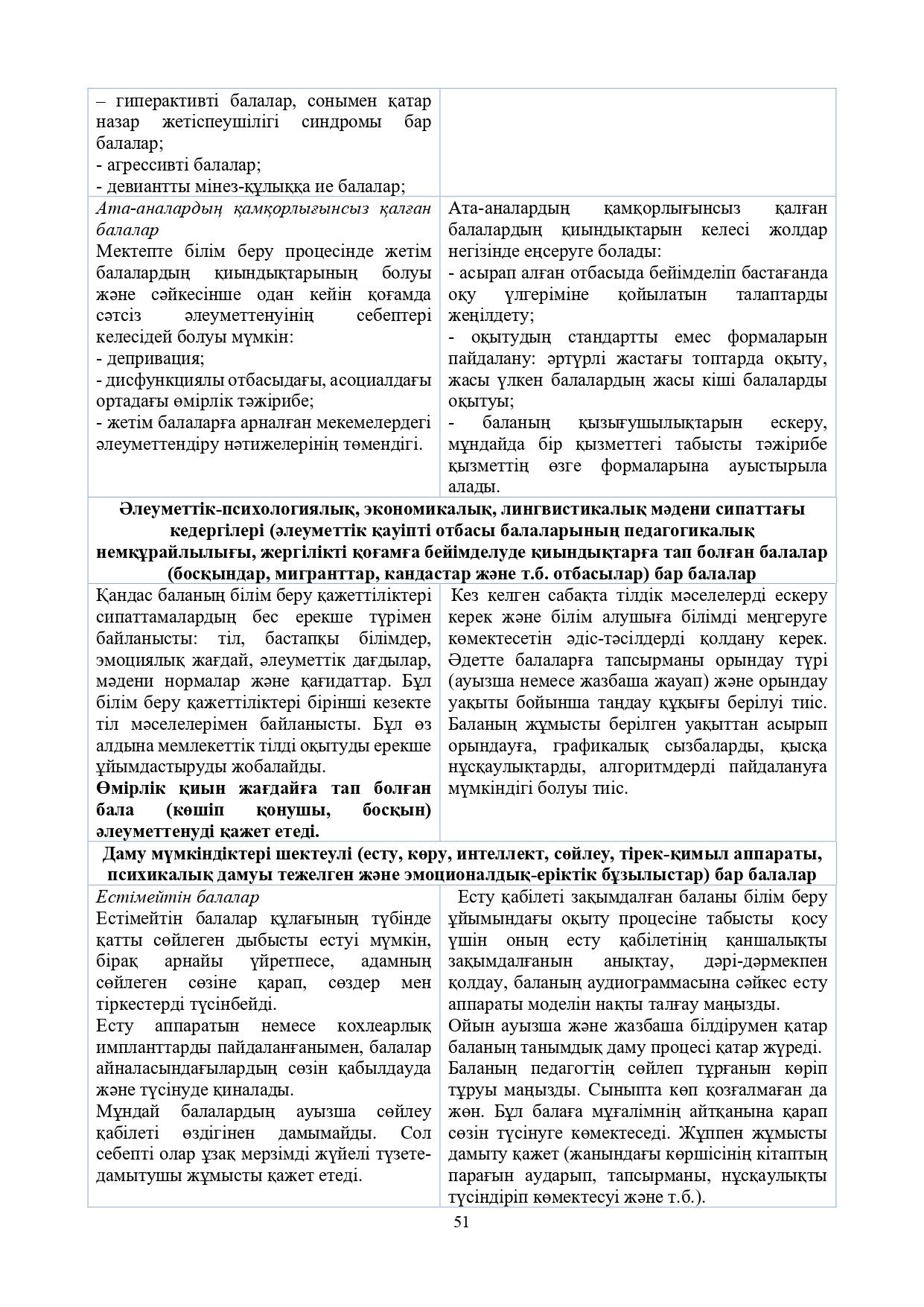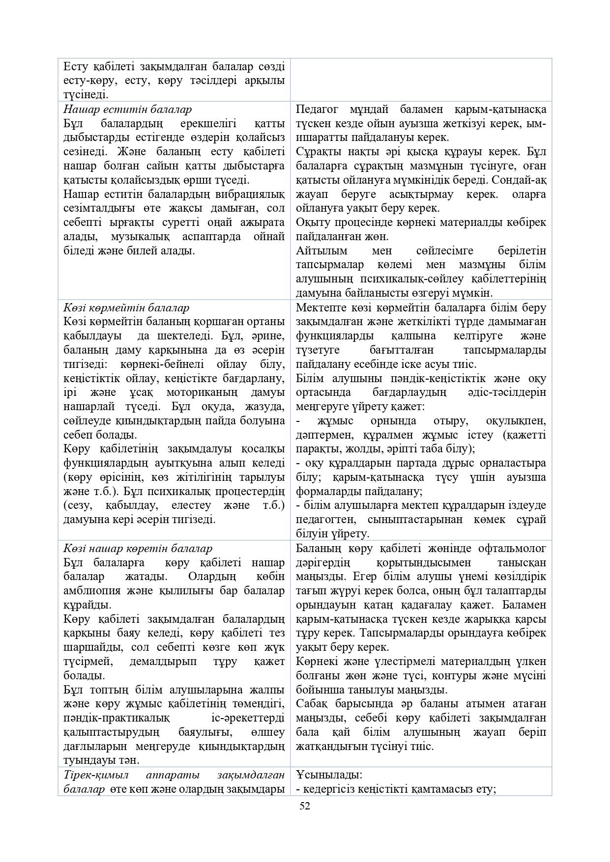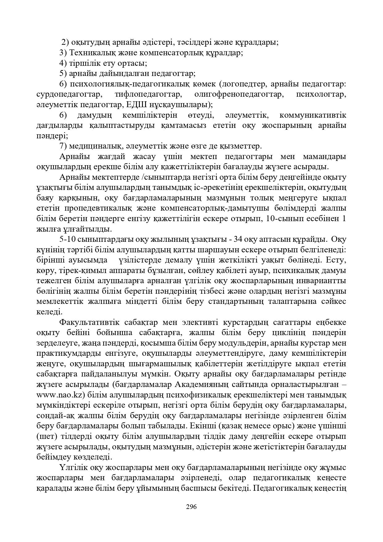 мамандандырылған және арнаулы білім беру ұйымдары үшін;