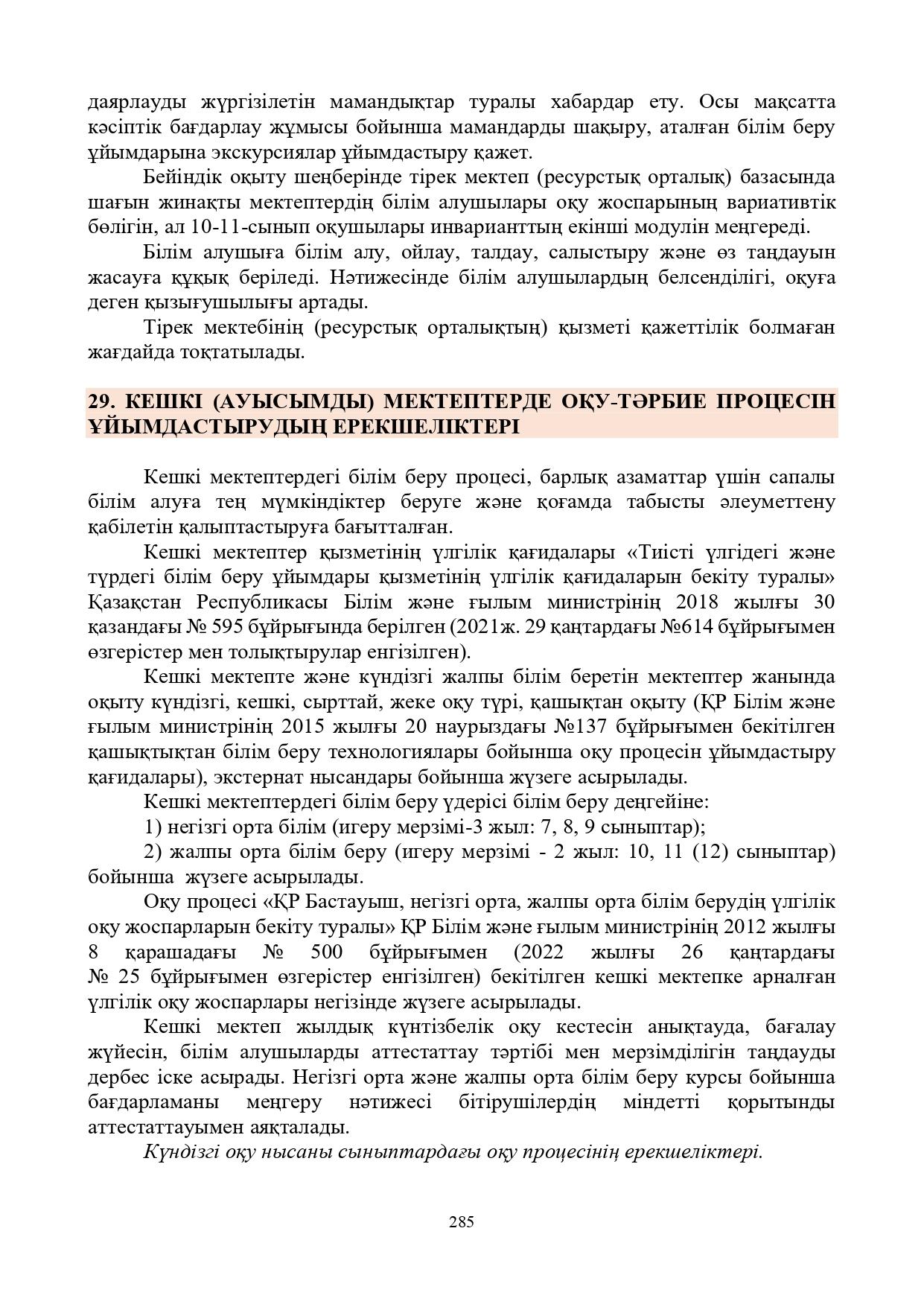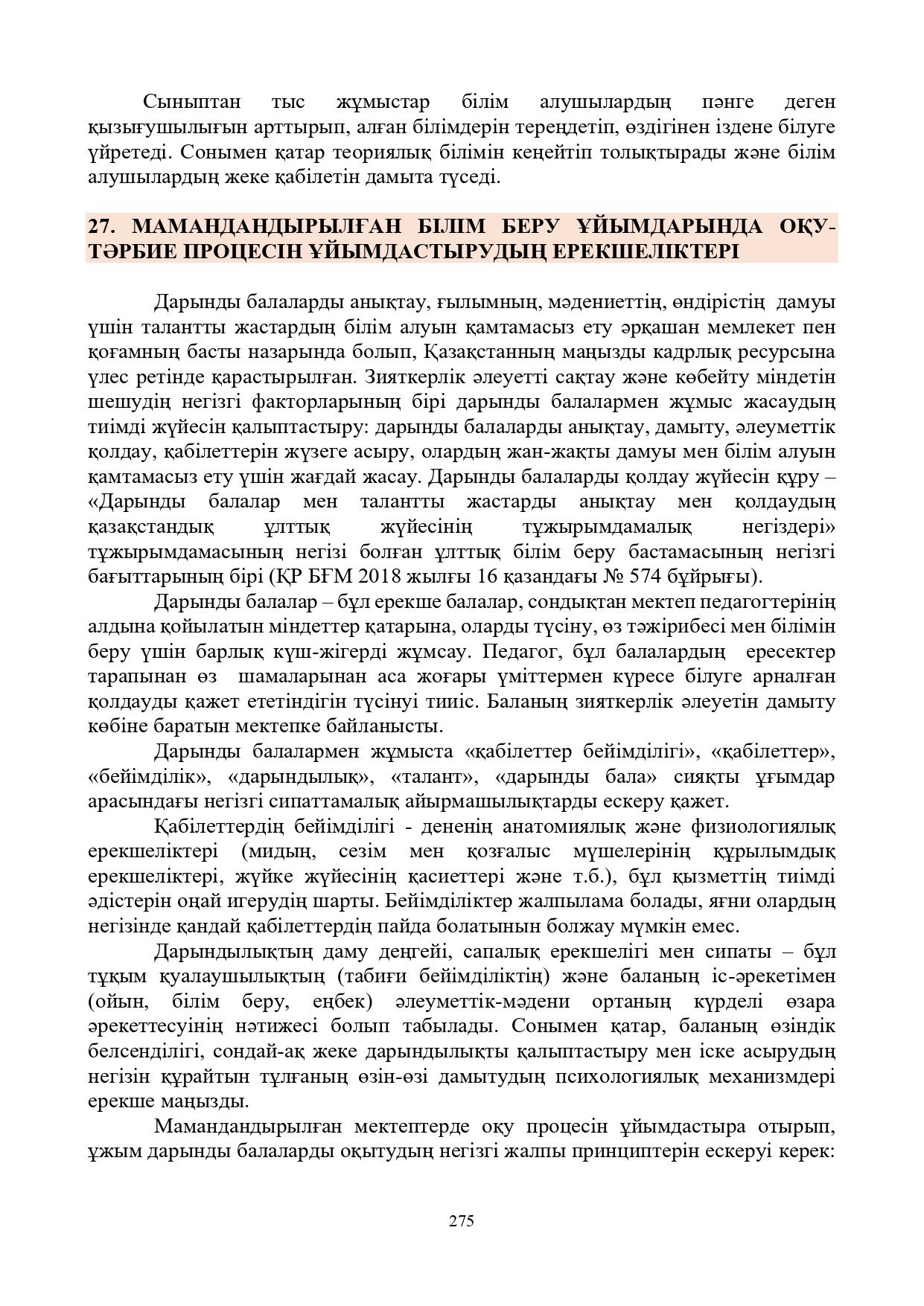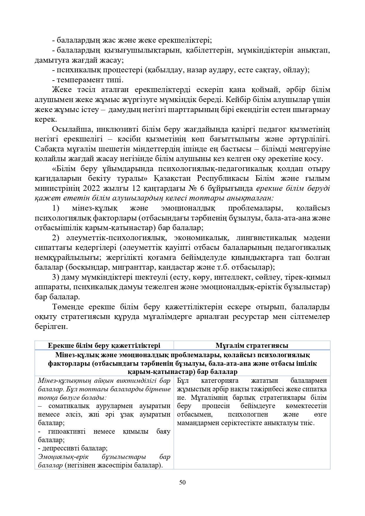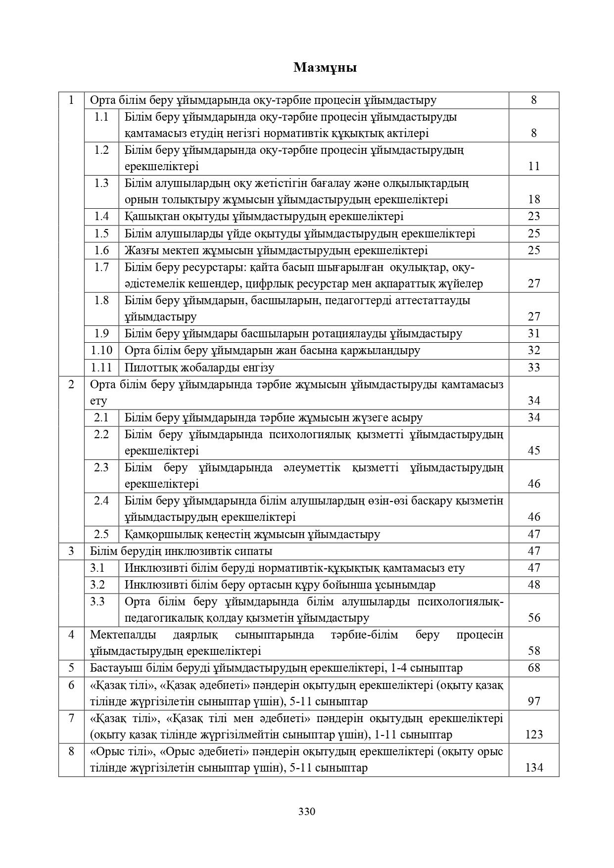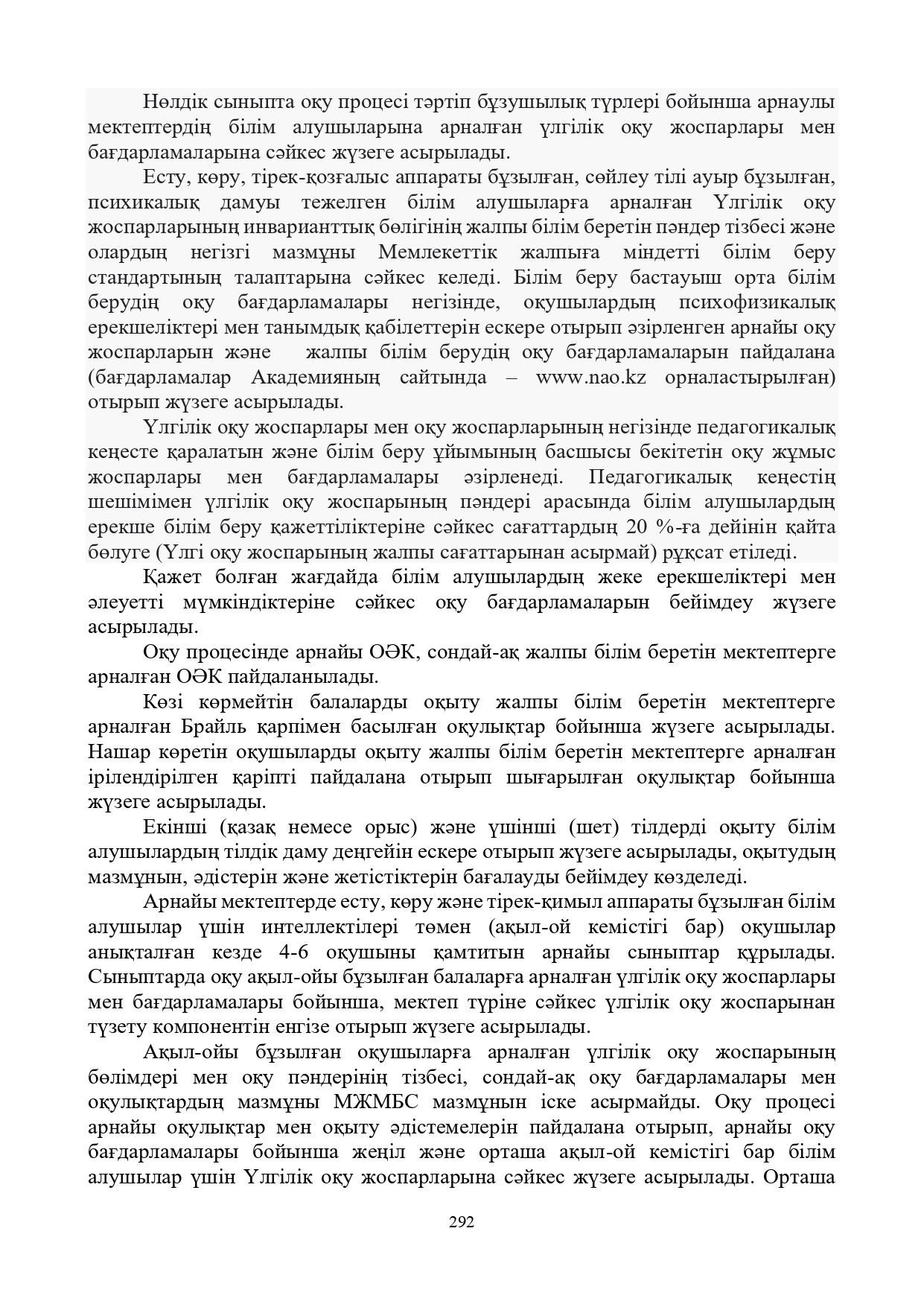 мамандандырылған және арнаулы білім беру ұйымдары үшін;