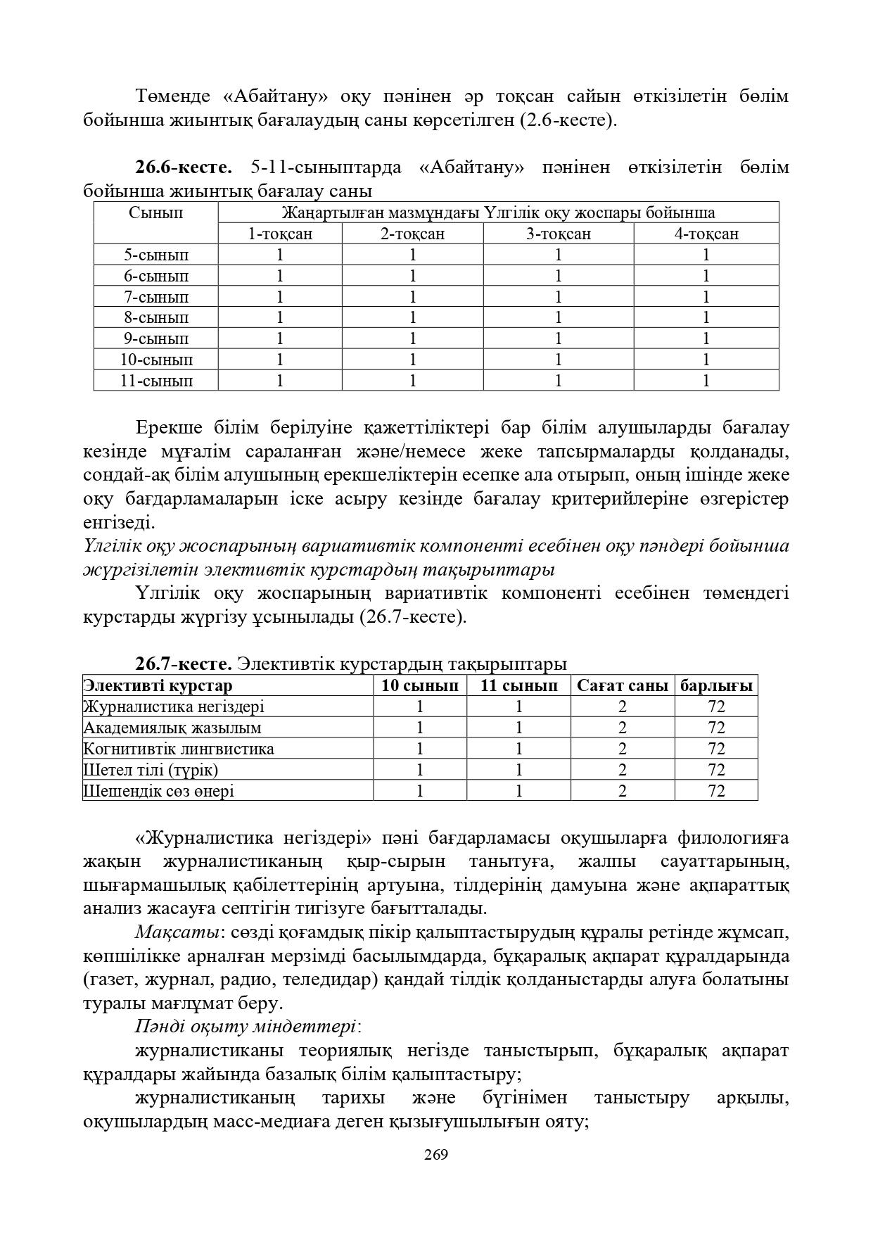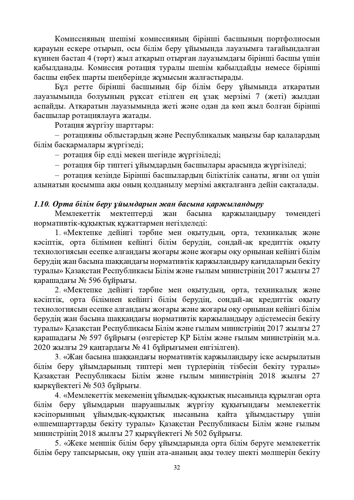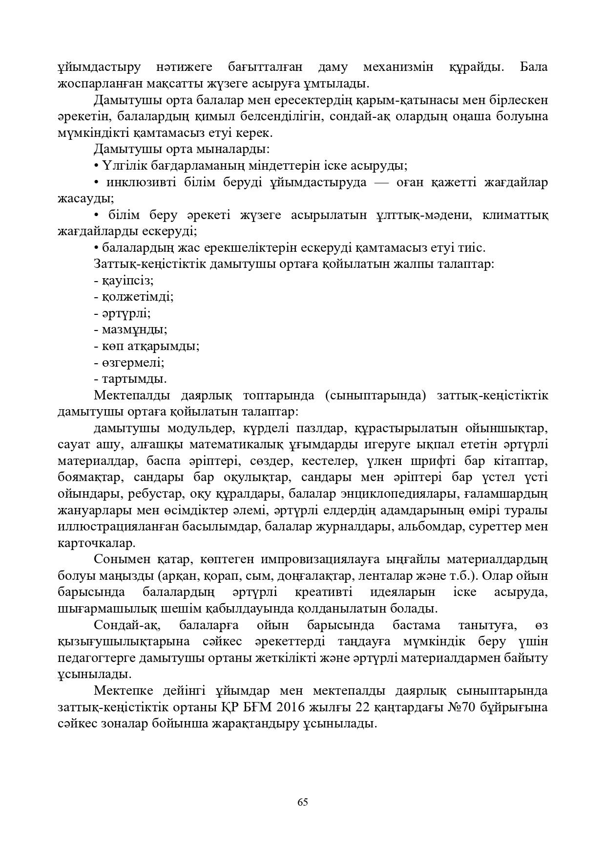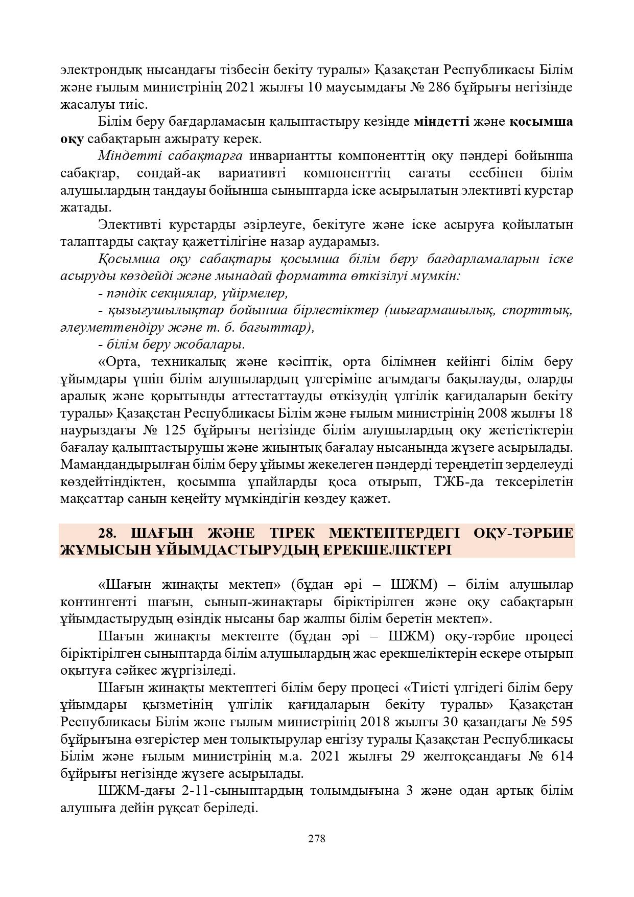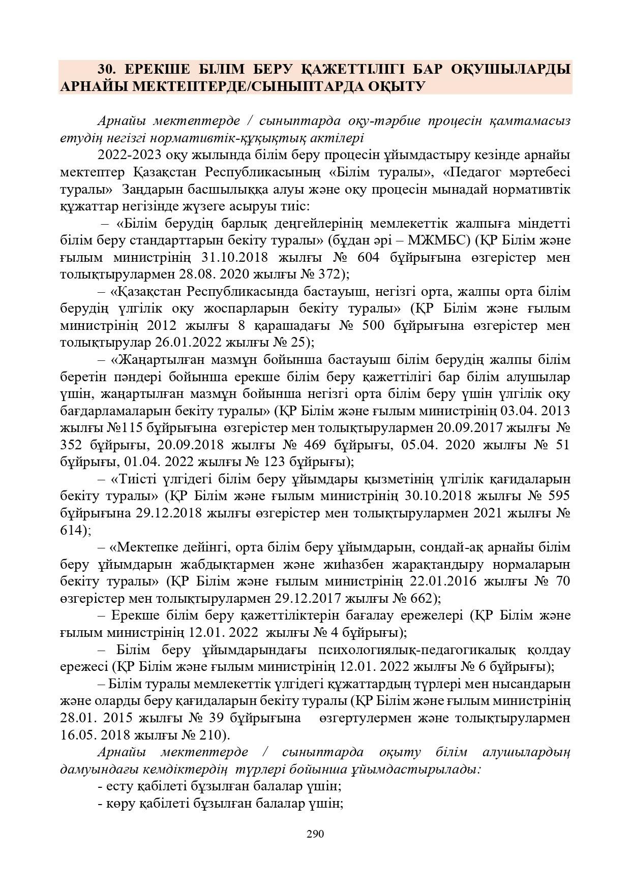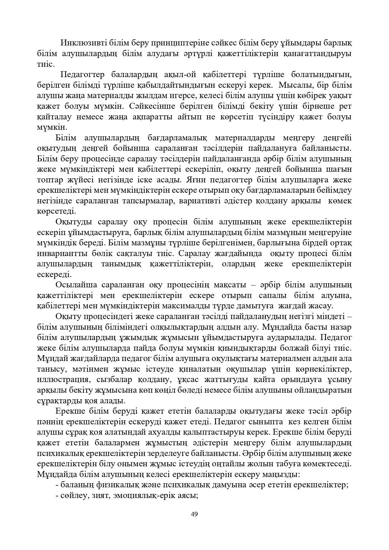 мамандандырылған және арнаулы білім беру ұйымдары үшін;