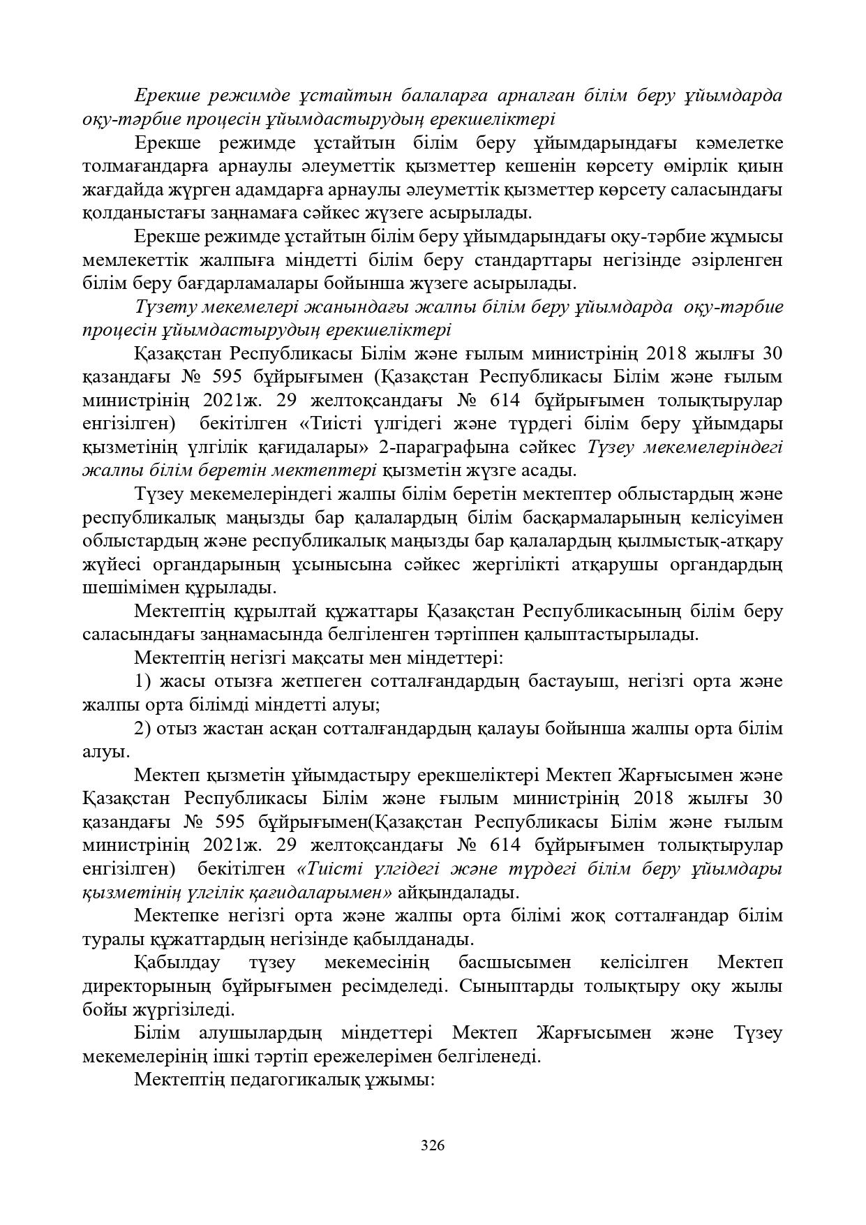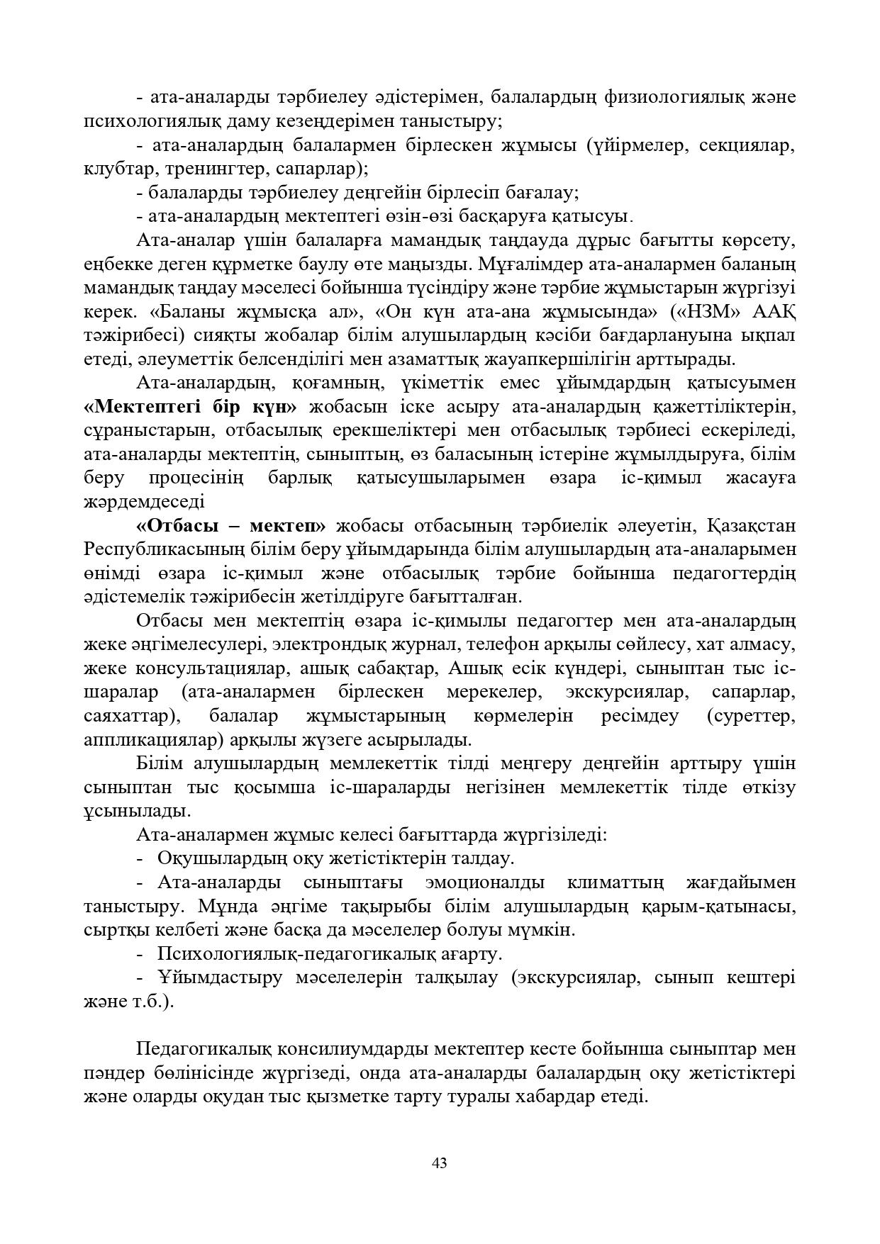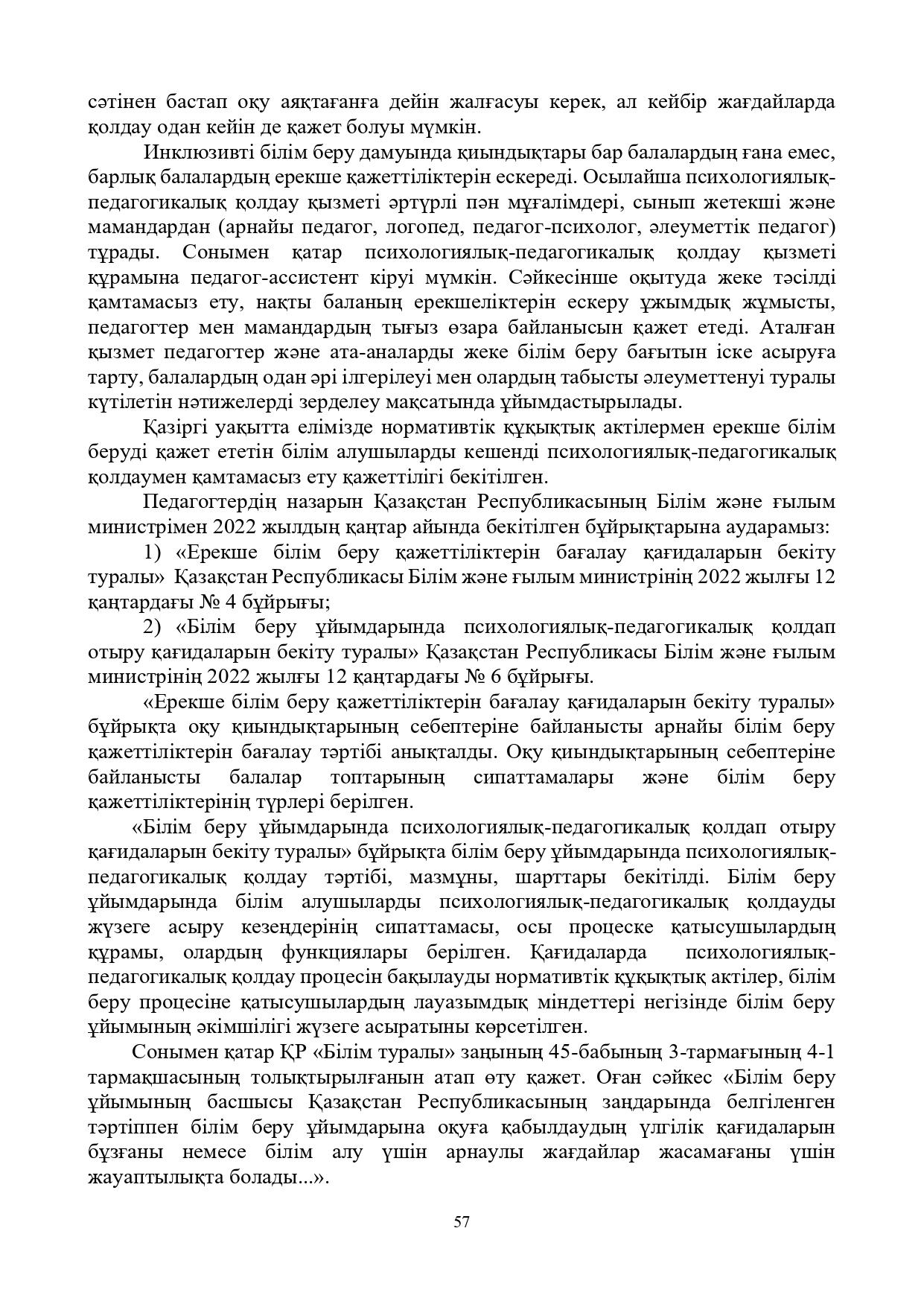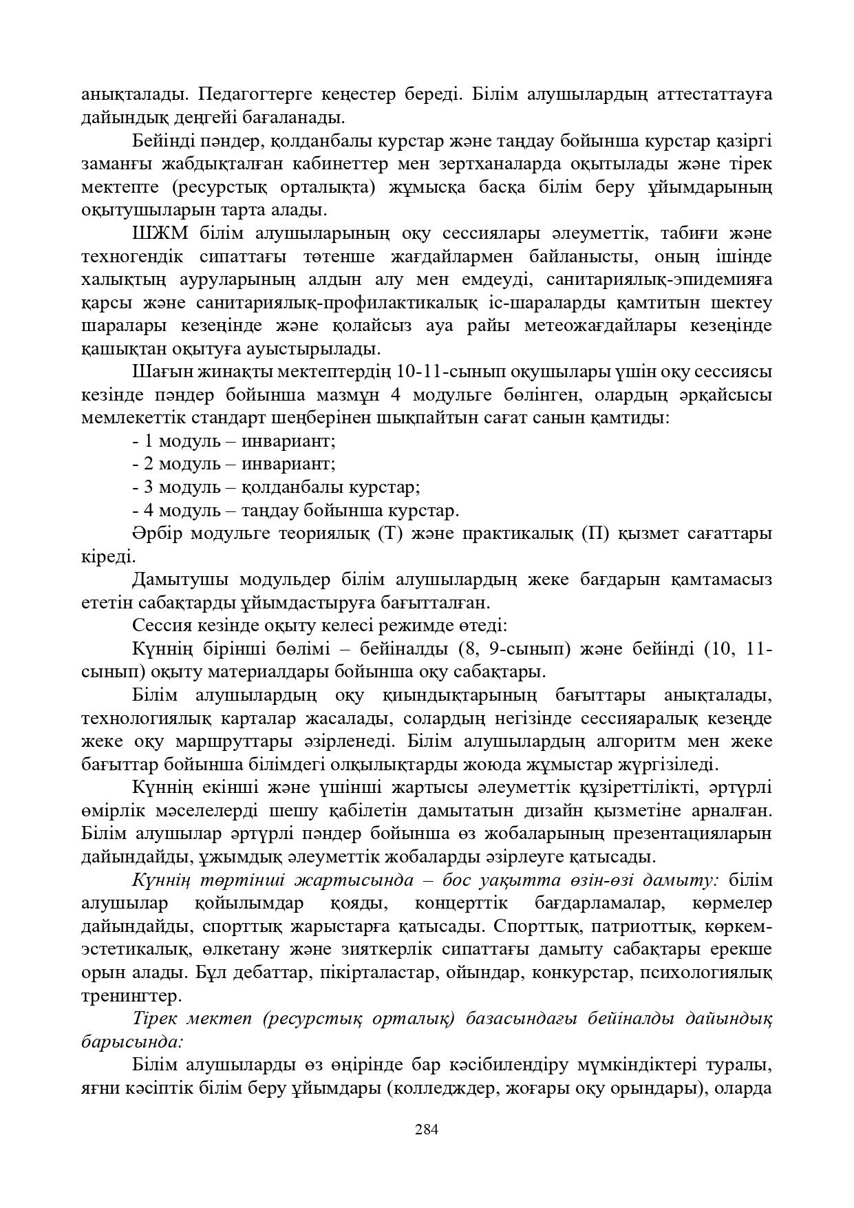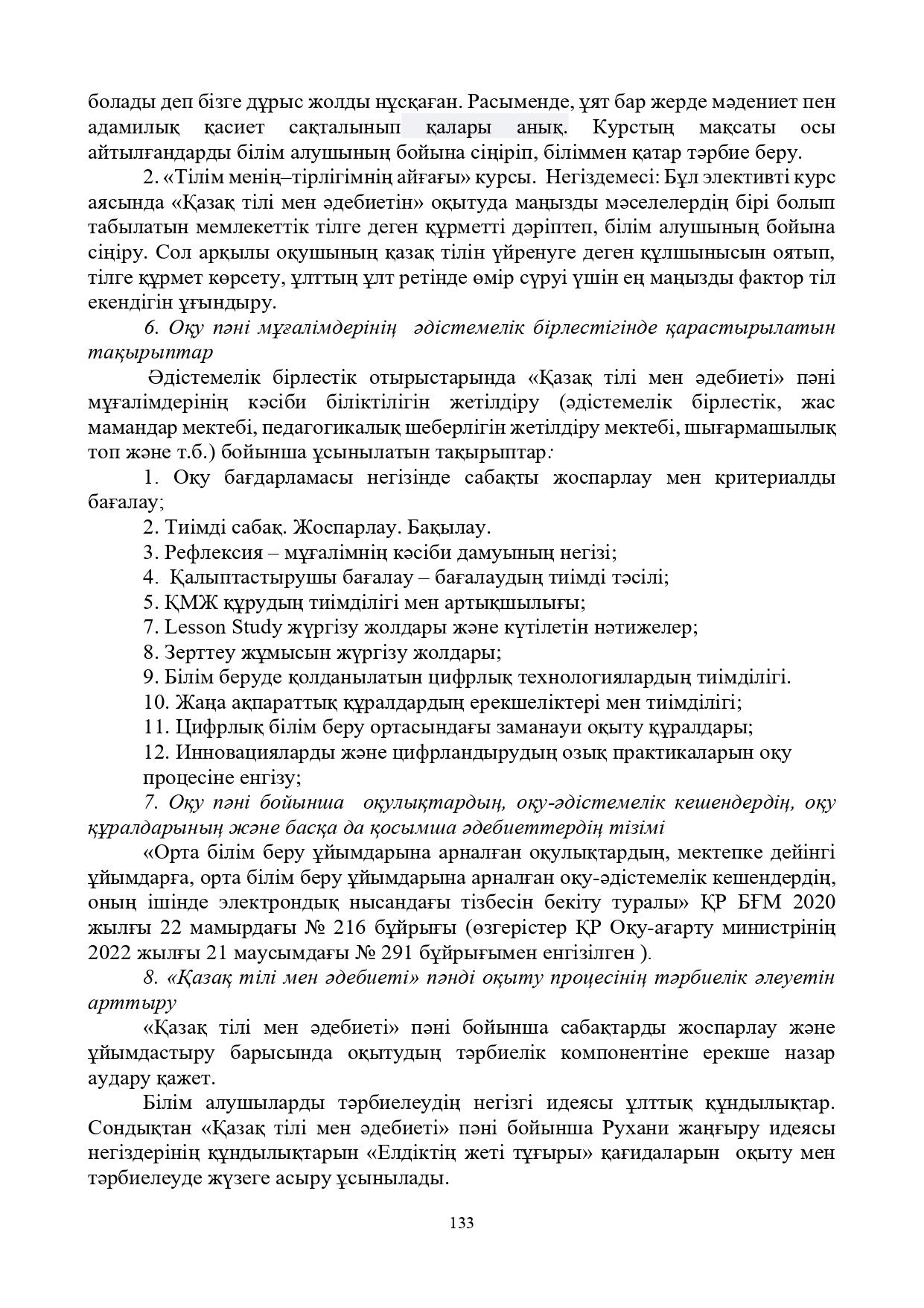 мамандандырылған және арнаулы білім беру ұйымдары үшін;