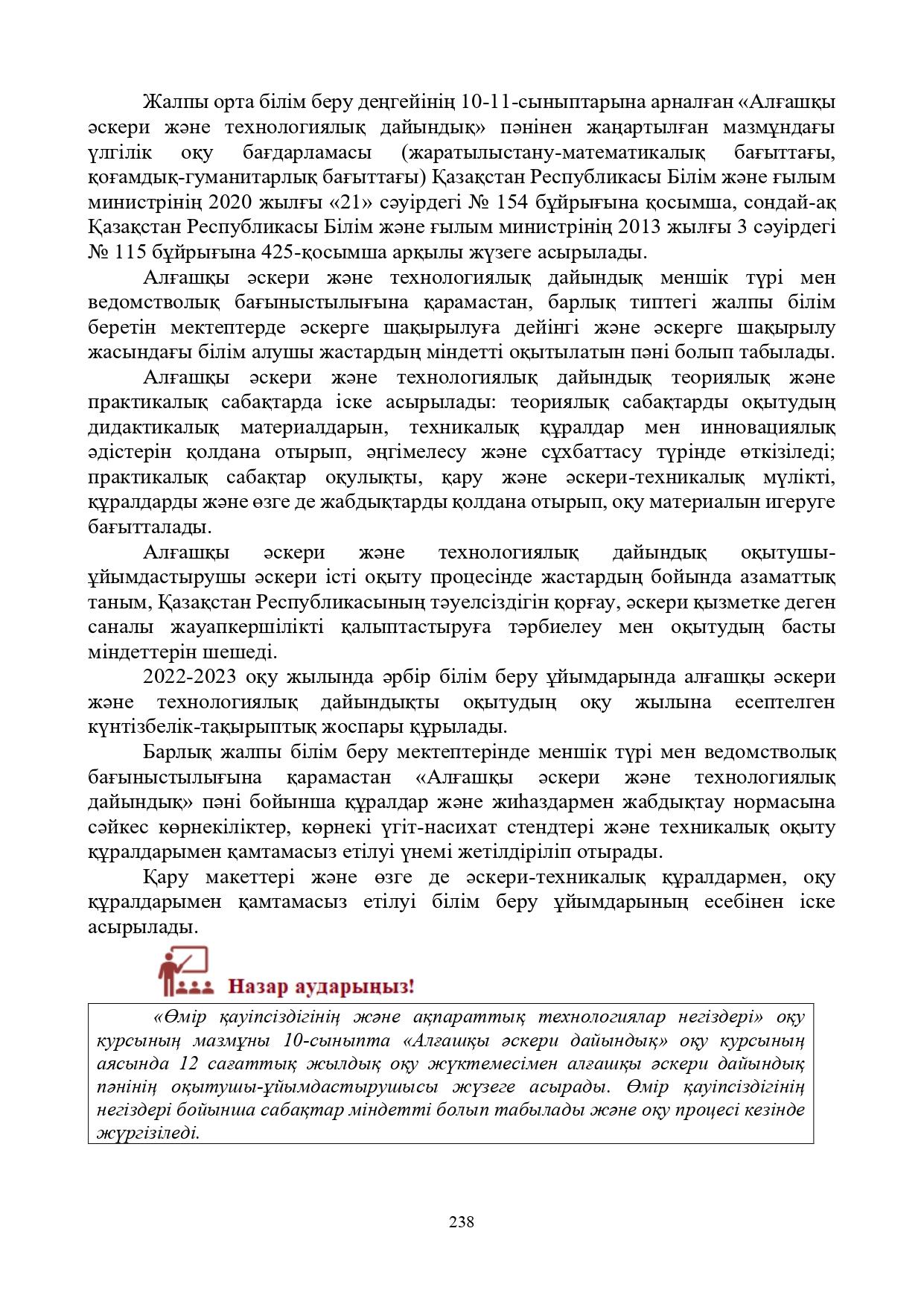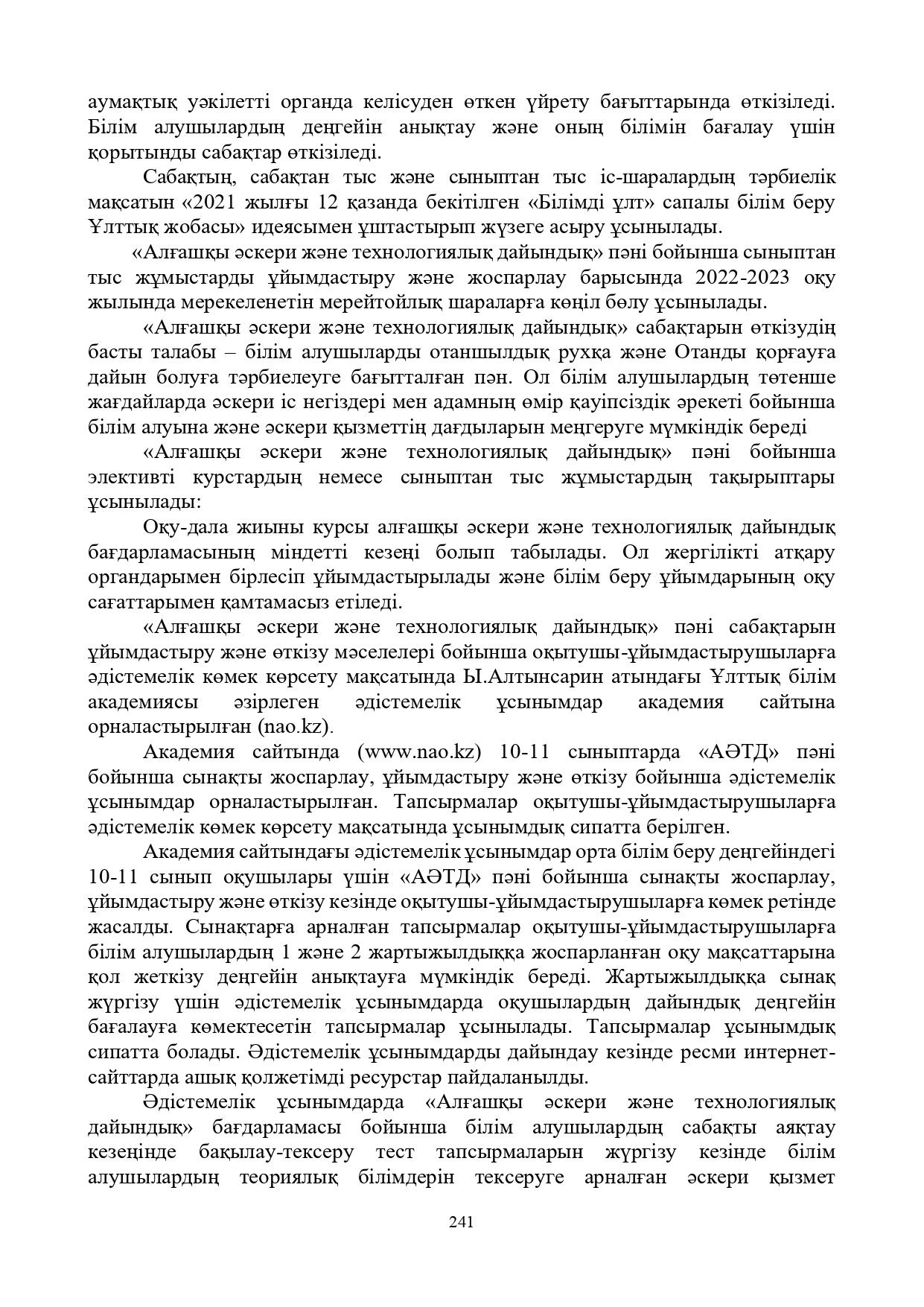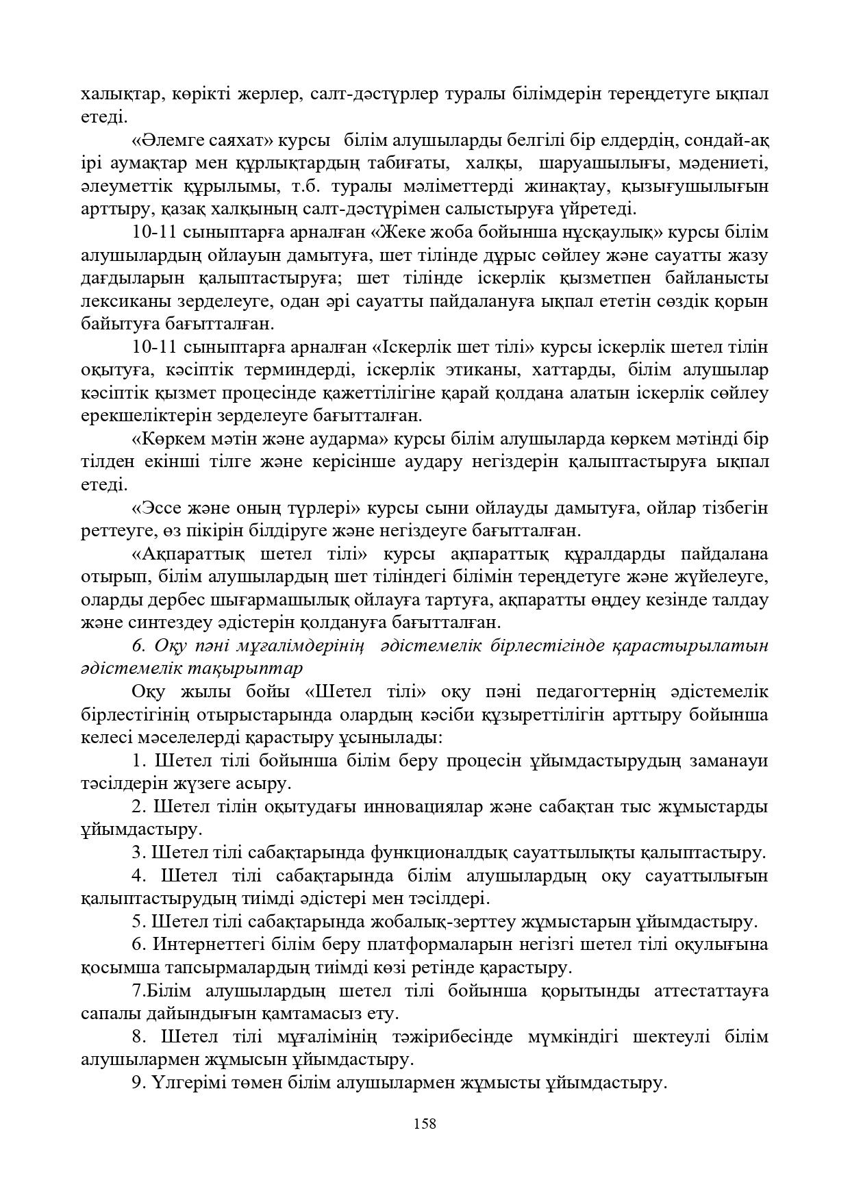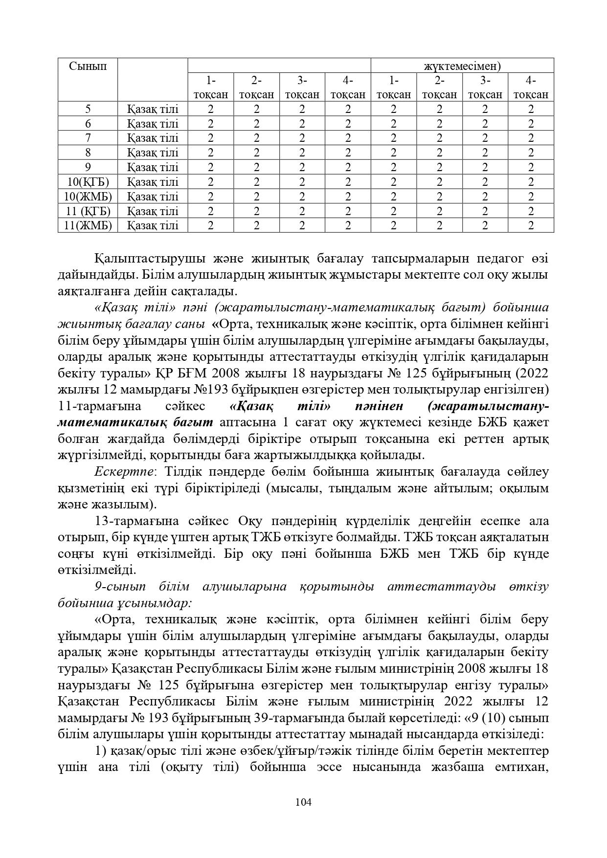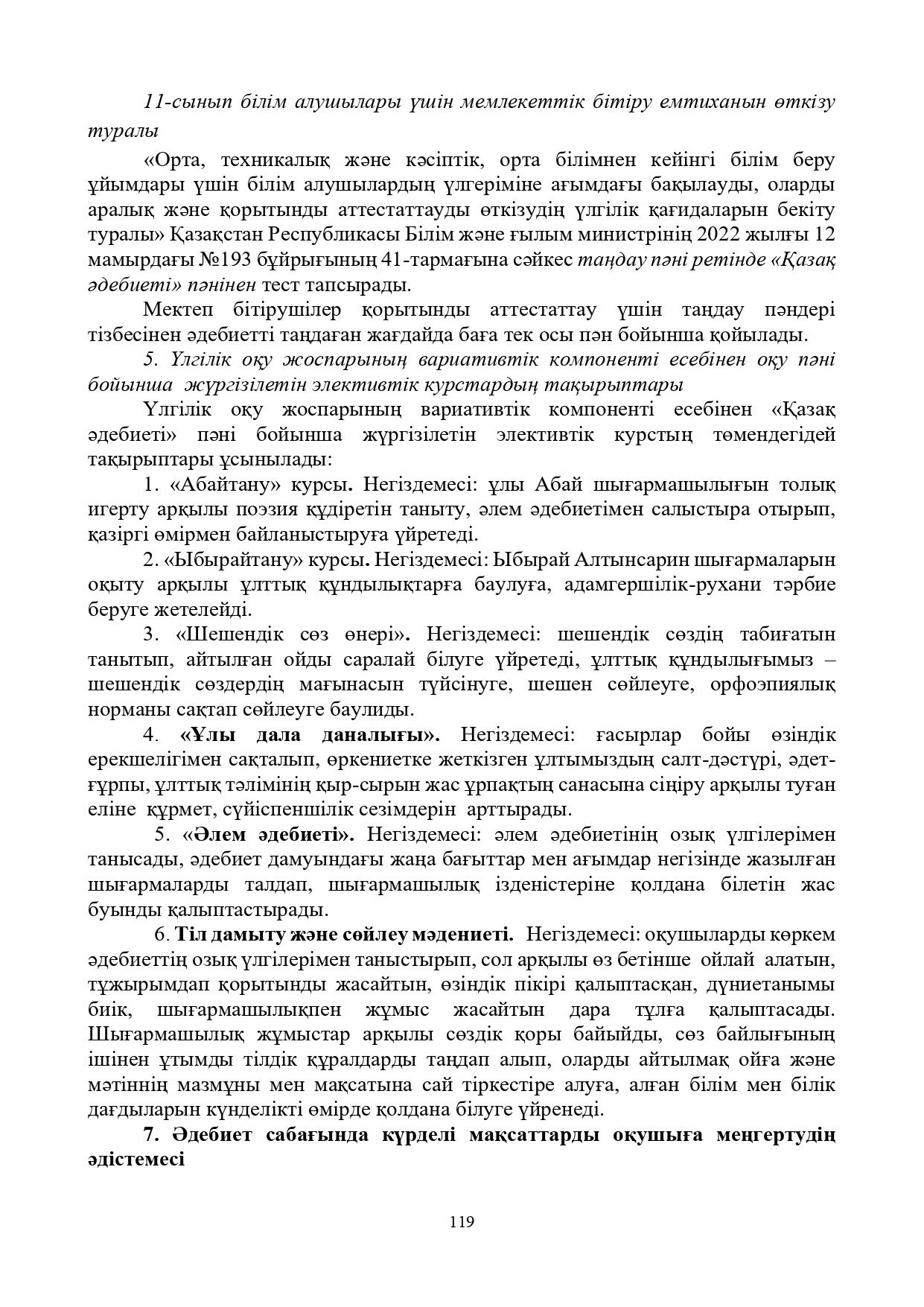 мамандандырылған және арнаулы білім беру ұйымдары үшін;