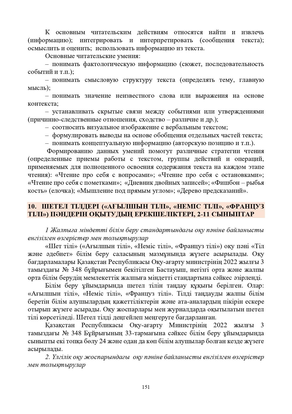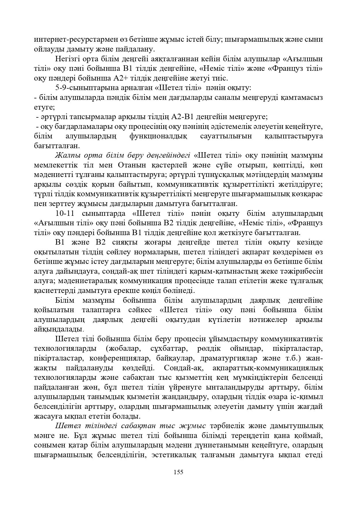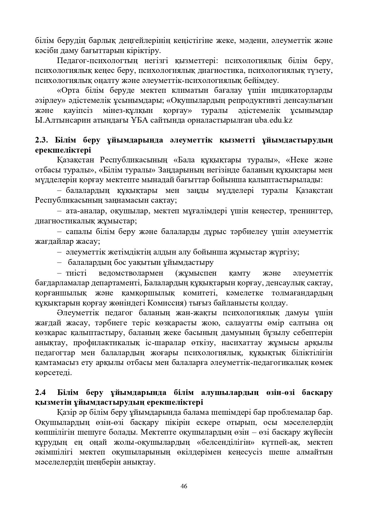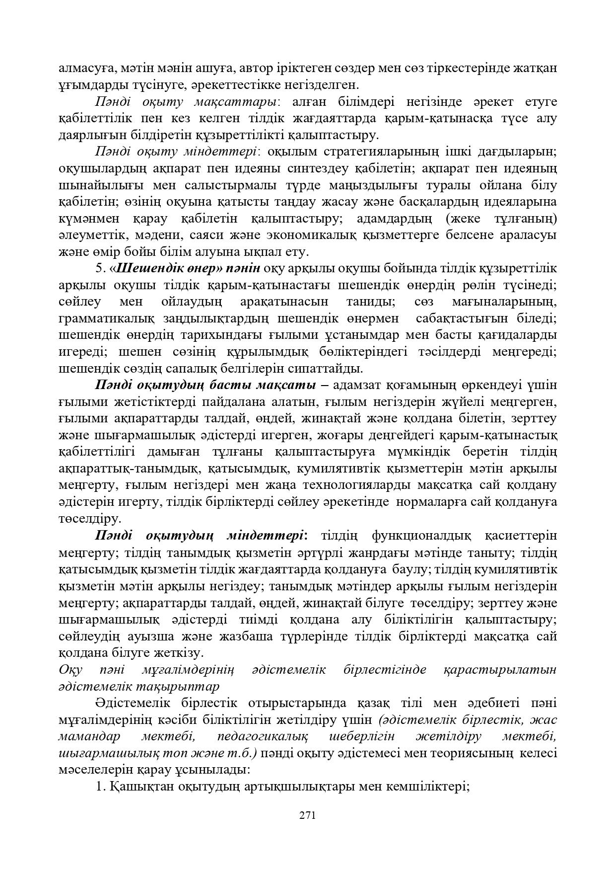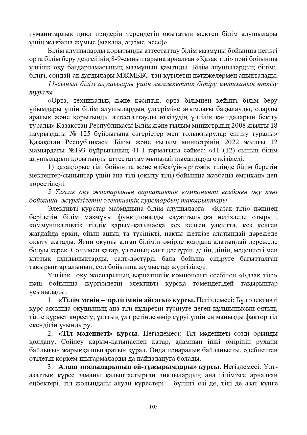 мамандандырылған және арнаулы білім беру ұйымдары үшін;