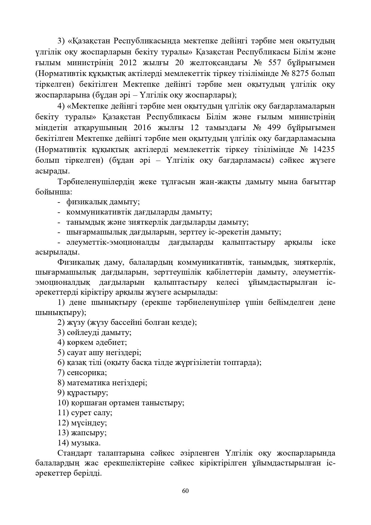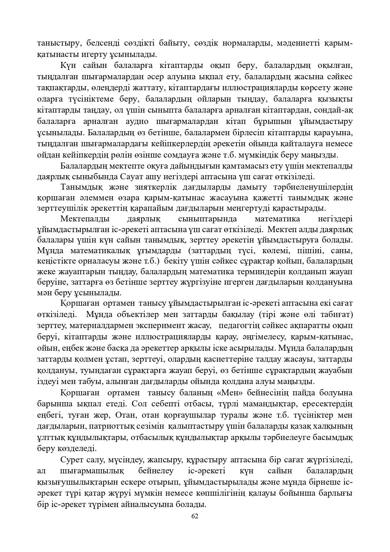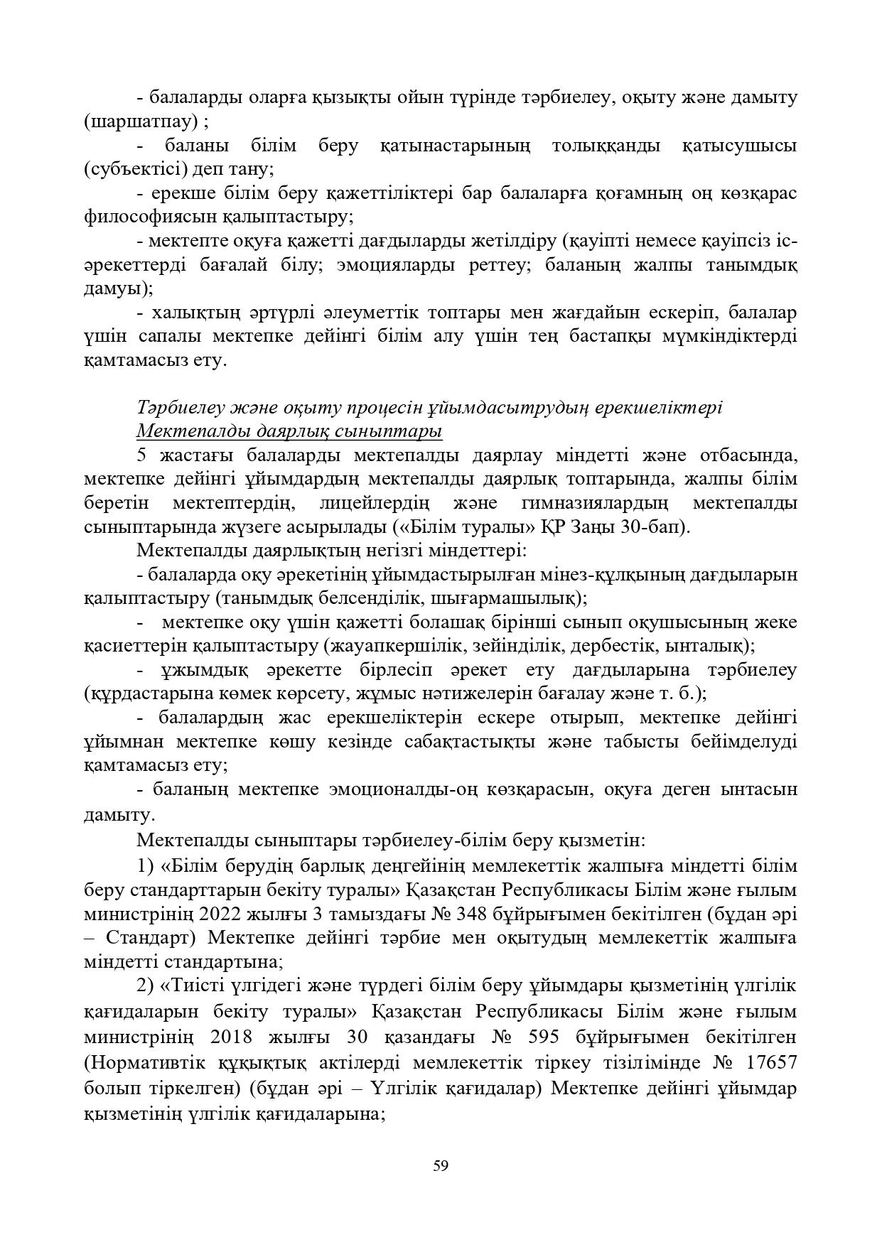 мектепке дейінгі ұйымдар, мектепке дейінгі тәрбие мен оқытудың мектепалды топтары, білім беру ұйымдарының мектепалды сыныптары үшін;