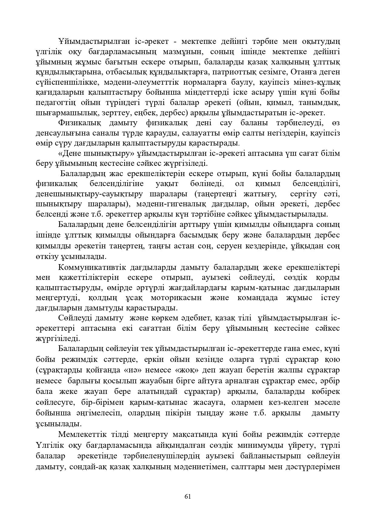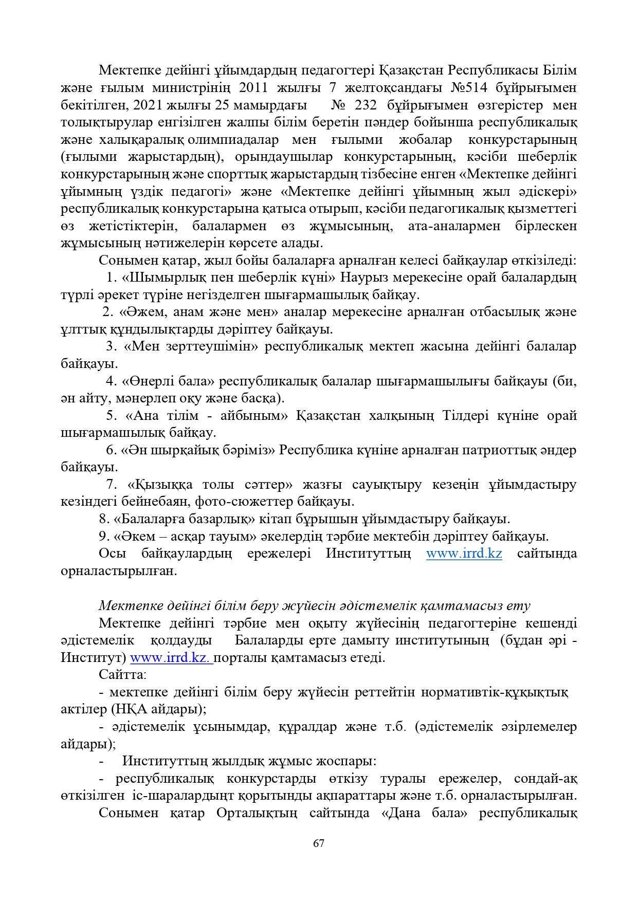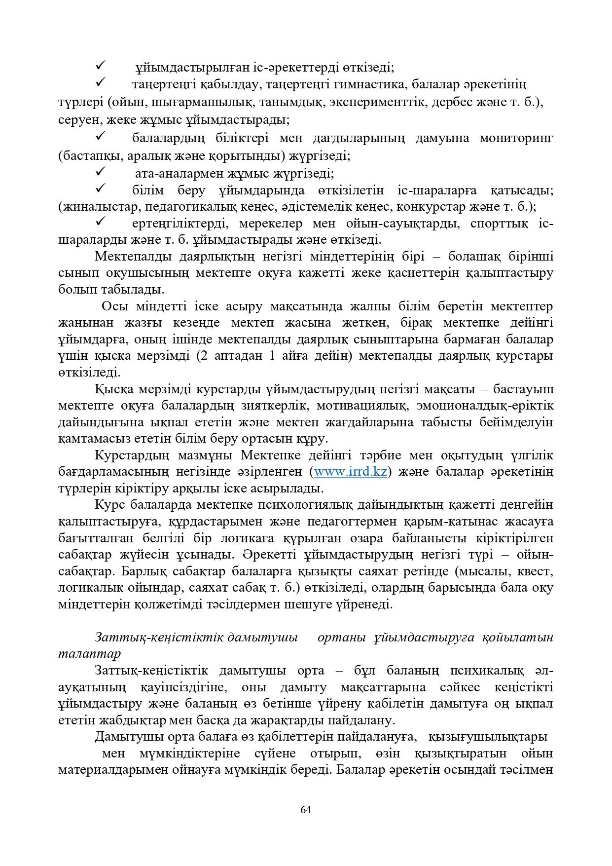мектепке дейінгі ұйымдар, мектепке дейінгі тәрбие мен оқытудың мектепалды топтары, білім беру ұйымдарының мектепалды сыныптары үшін;