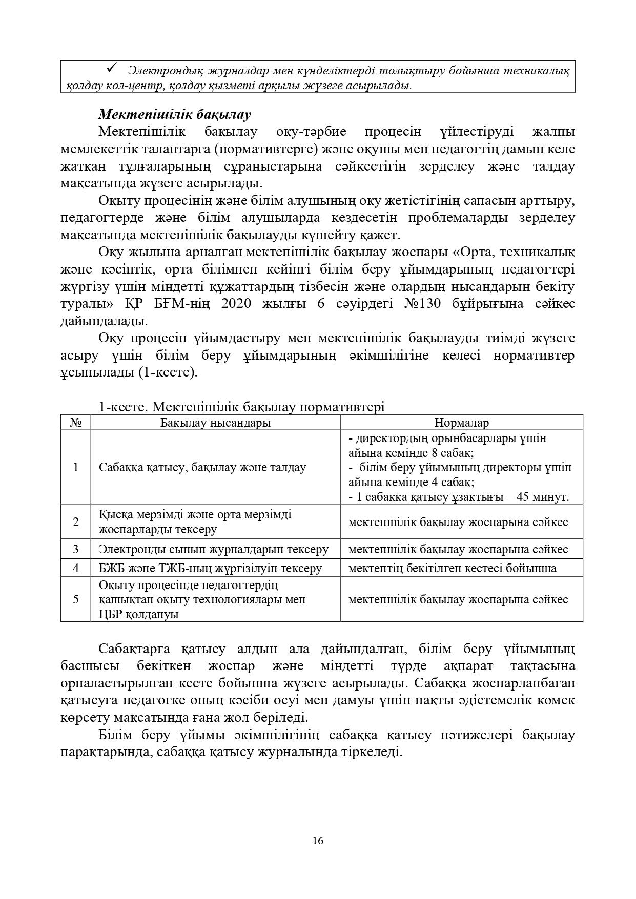 1) 16 сағат – орта білім беру ұйымдары үшін;