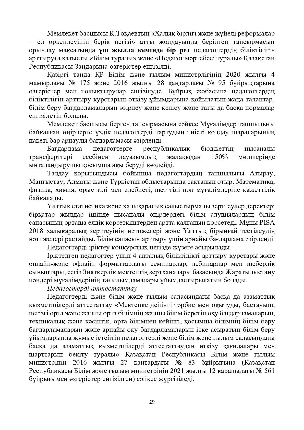 29. "Құқықтық актілер туралы" 2016 жылғы 6 сәуірдегі Қазақстан Республикасының Заңына (Қазақстан Республикасы Парламентінің Жаршысы, 2016 ж., № 7-I, 46-құжат; 2017 ж., № 14, 51-құжат; № 16, 56-құжат; 2018 ж., № 10, 32-құжат; № 14, 44-құжат; № 16, 53, 55-құжаттар; № 19, 62-құжат; 2019 ж., № 2, 6-құжат; № 15-16, 67-құжат):