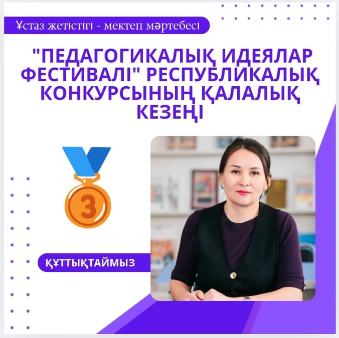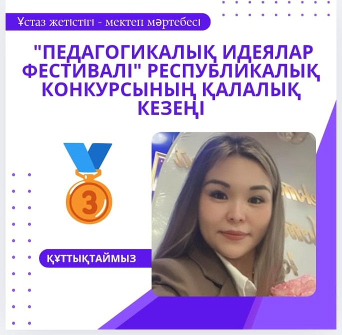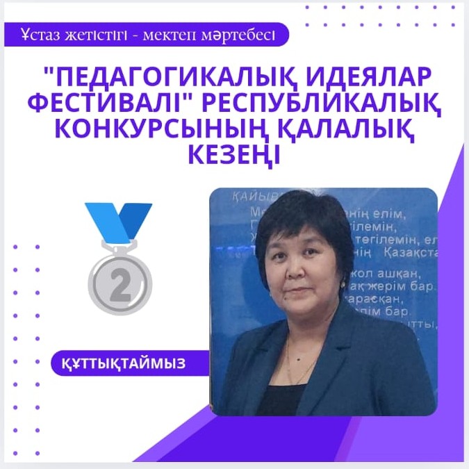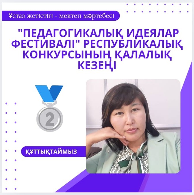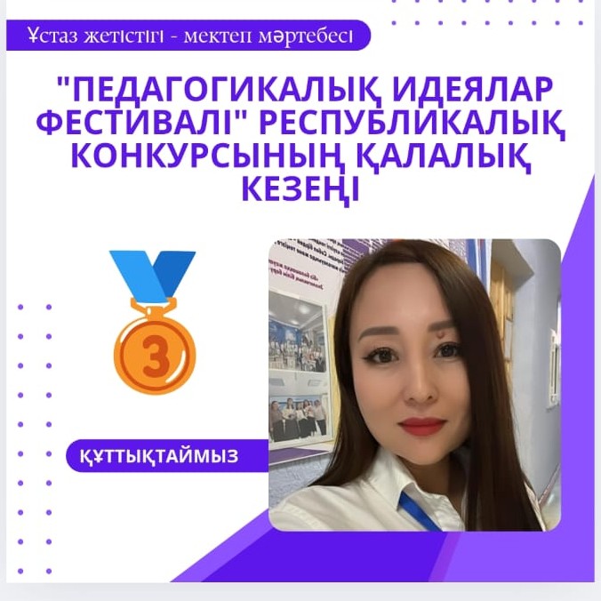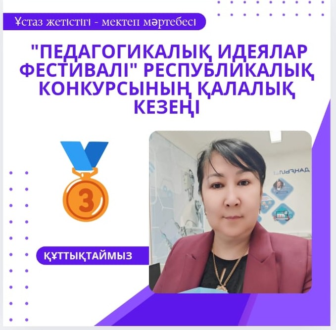 20 November 2025 0 1 2 3 4 5 Педагогикалық идеялар фестивалінің қалалық кезеңі қорытындысы 1. 1-орын Зиядаева Б.Қ 2. 2-орын Байтемирова Г.Т3. 2-орын Жилкибаева К.О4. 3 -орын Омарова А.Н5. 3-орын Смагулова Ж.С6. 3 -орын Нугуманова Л.Т7. 3-орын Шарапиева Л.МҚҰТТЫҚТАЙМЫЗ👏👏👏