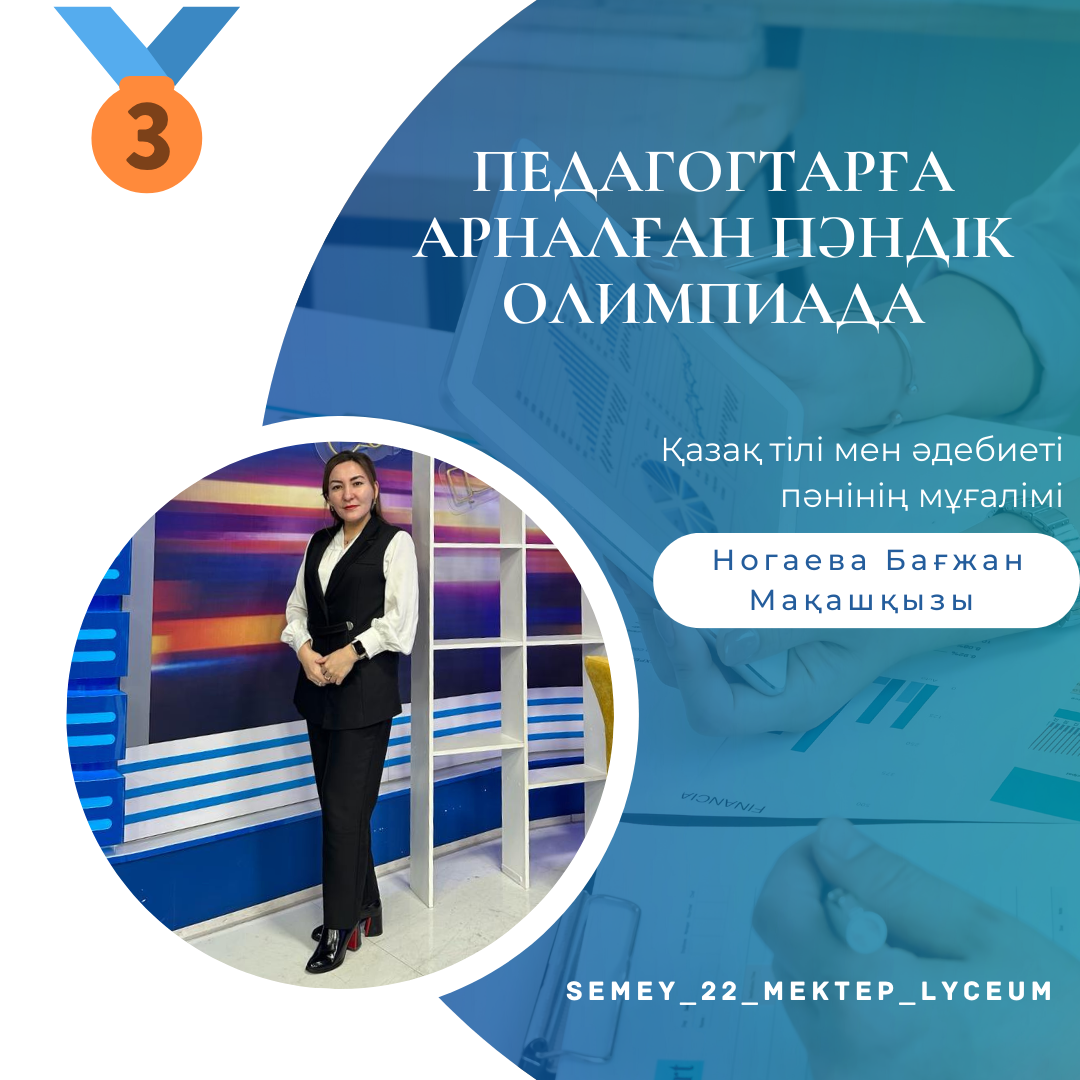24 January 2024 0 1 2 3 4 5 Педагогтерге арналған пәндік олимпиада 23.01.24ж. І қалалық қазақ тілі мен әдебиеті пәні педагогтеріне арналған пәндік олимпиадаға мектеп-лицейіміздің қазақ тілі мен әдебиеті пәні мұғалімі, педагог-зерттеуші Бағжан Мақашқызы қатысып 3-орын иеленді.ҚҰТТЫҚТАЙМЫЗ!👏