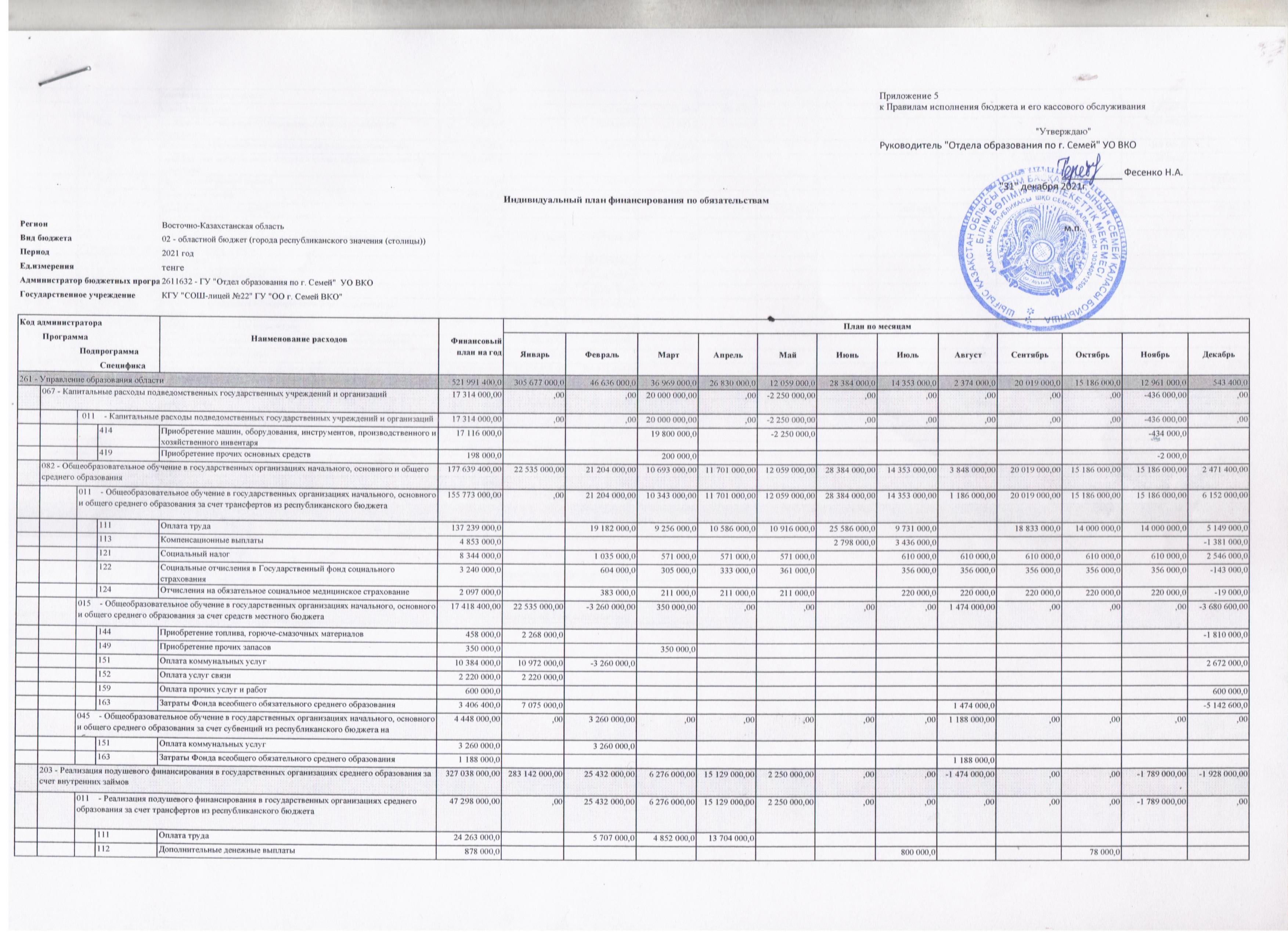 Индивидуальный план финансирования по обязательствам » Средняя общеобразовательная школа № 22