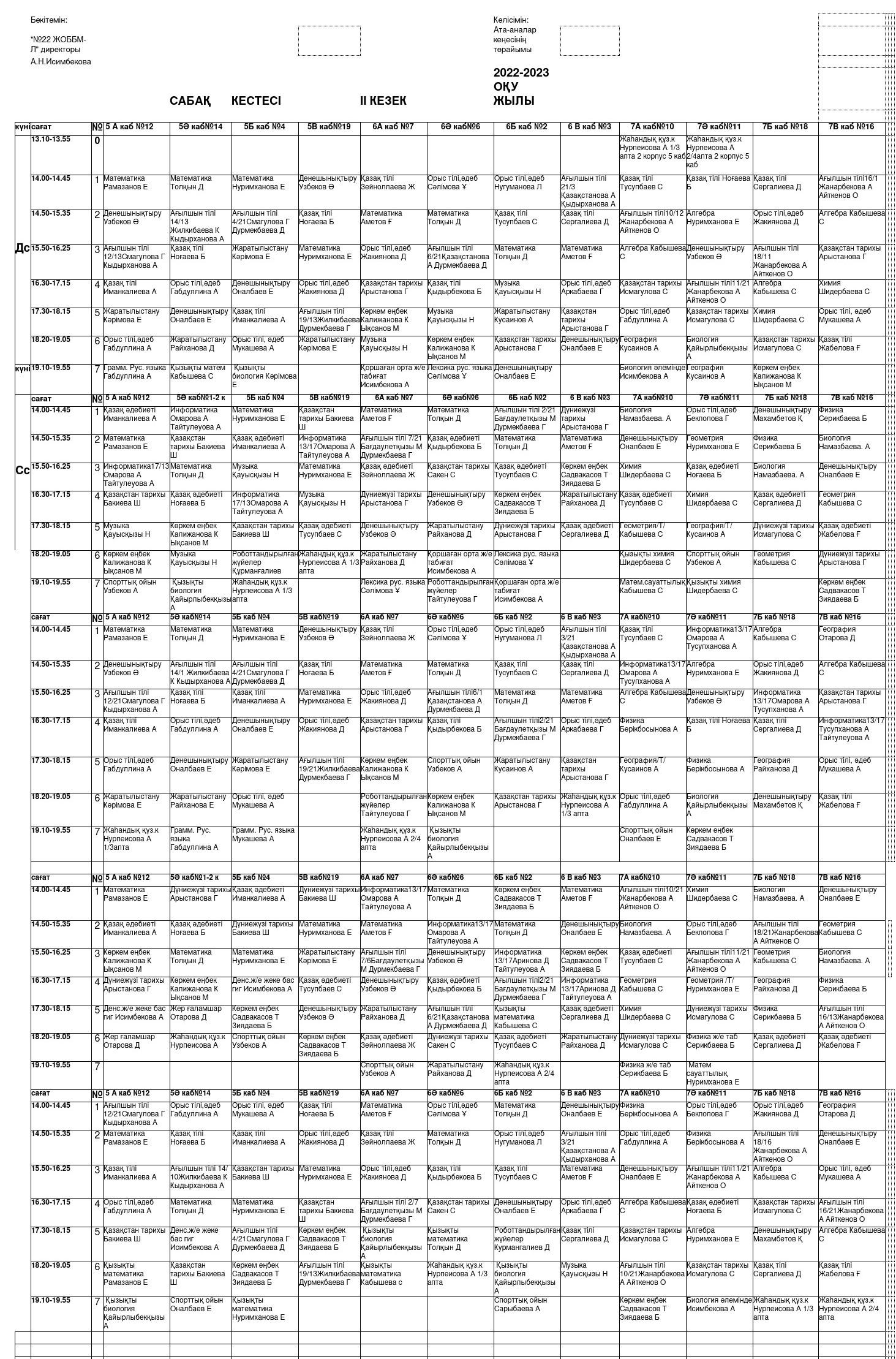 schedule of lessons 2-кезек » Средняя общеобразовательная школа № 22