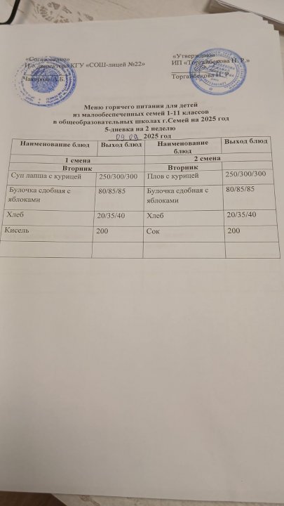 Күнделікті ас мәзірі/ 2 апта/ Сейсенбі/ 1 ауысым мен 2 ауысым » Средняя общеобразовательная школа № 22