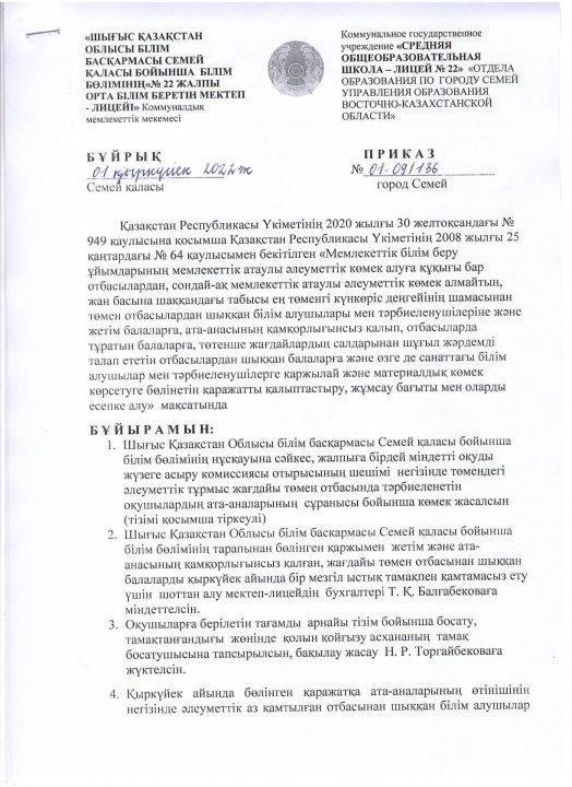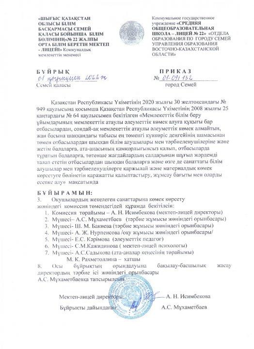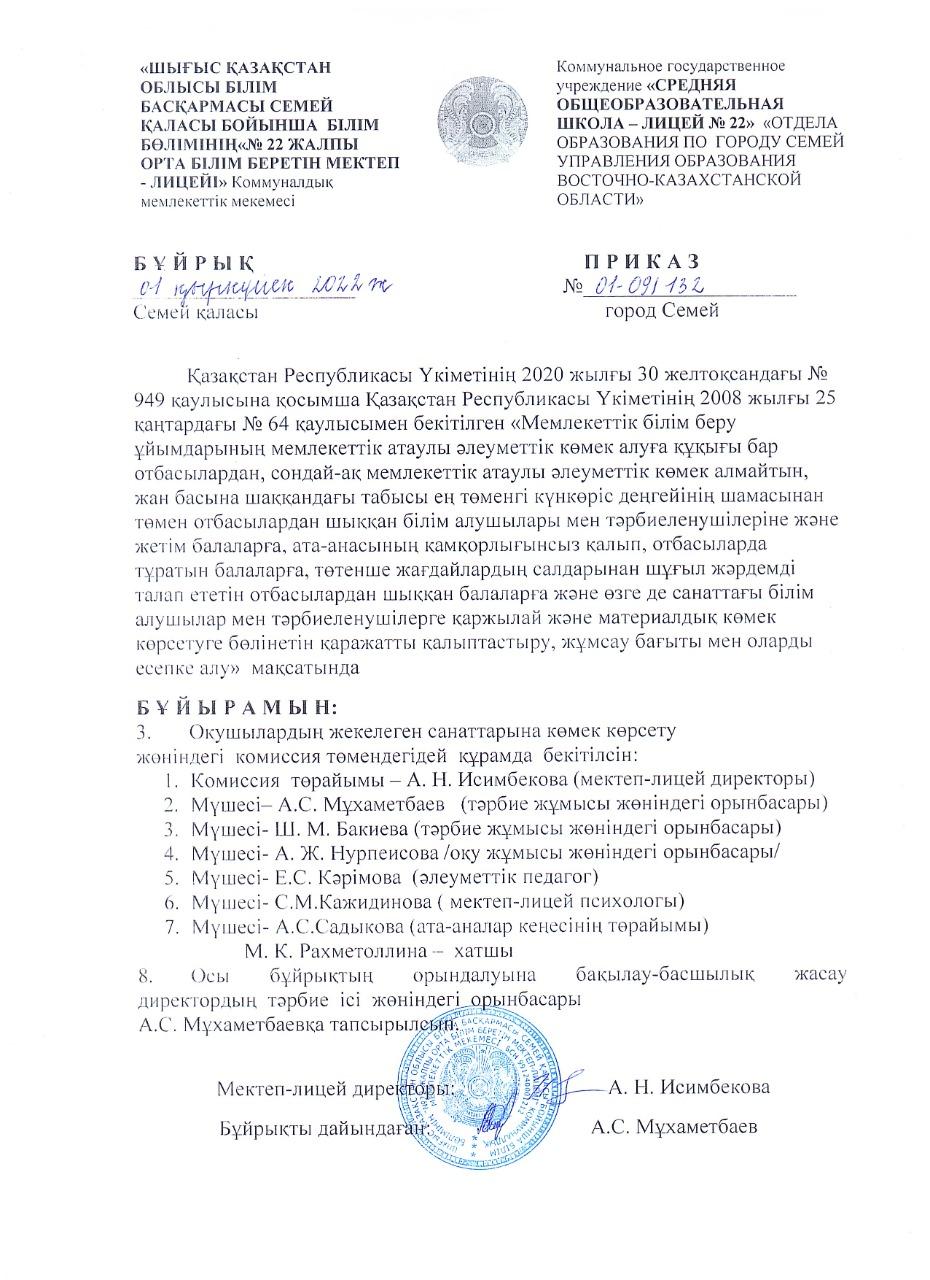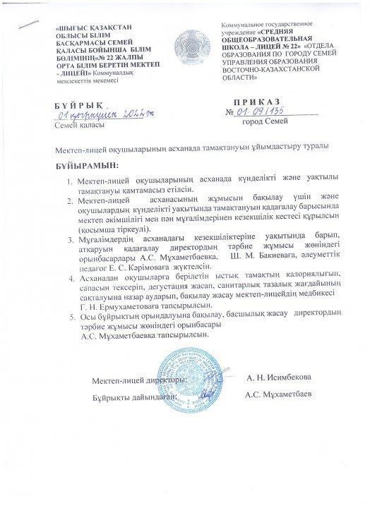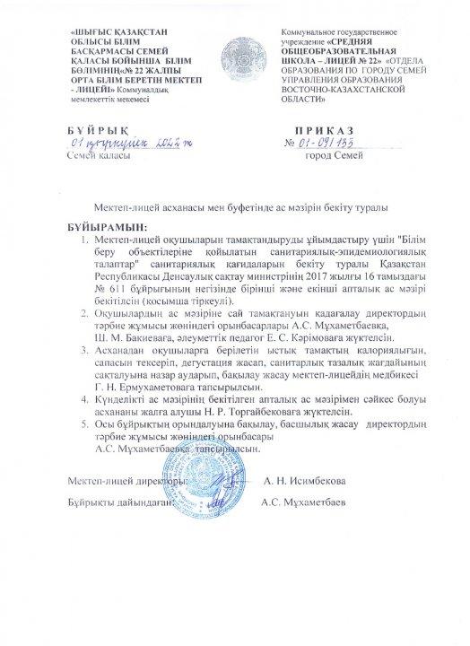 Бұйрық » Средняя общеобразовательная школа № 22