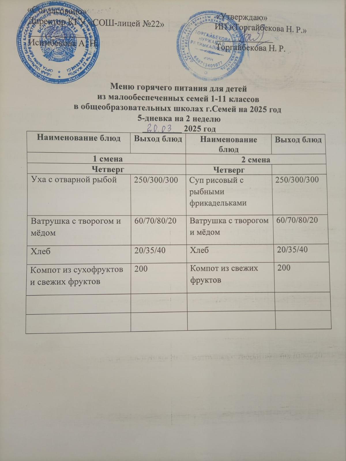 Күнделікті ас мәзірі/ 2 апта/ Бейсенбі/ 1 ауысым » Средняя общеобразовательная школа № 22