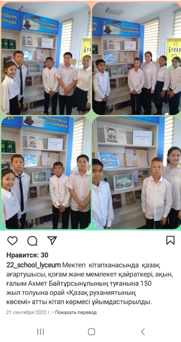 21 сентябрь 2022 0 1 2 3 4 5 "Қазақ руханиятының көсемі"кітап көрмесі. Ахмет Байтұрсынұлының 150 жыл толуына орай.