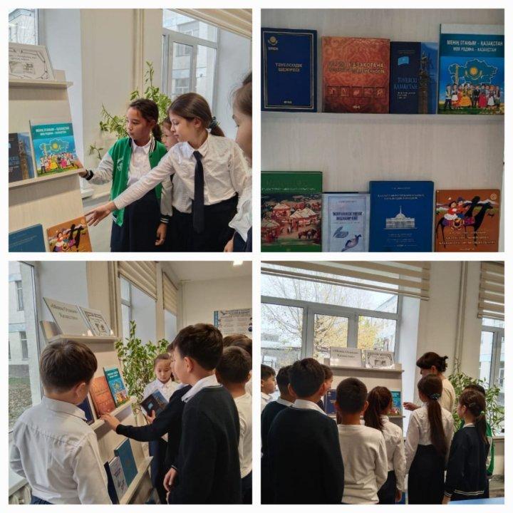 «Оқуға құштар мектеп» жобасы аясында, 25 қазан республика күніне арналған «Менің Отаным-Қазақстан» атты кітап көрмесі ұйымдастырылды