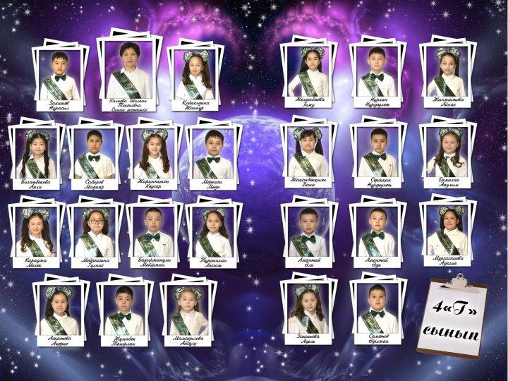 28 май 2023 0 1 2 3 4 5 4 «Г» сынып. Бастауыштан киелі, Талай дарын түледі. Әрбір бала өзіңді, Есіне алып жүреді. Сынып жетекшісі Шолпан Токеновна