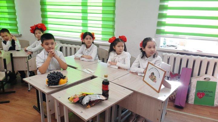 "Бастауышым - бастамам білім жолын бастаған" онкүндігі барысында 3"В" сыныбында өткен "Денсаулық - зор байлық" тақырыбындағы ашық тәрбие сағаты. Жетекшісі : Анар Серикказиновна