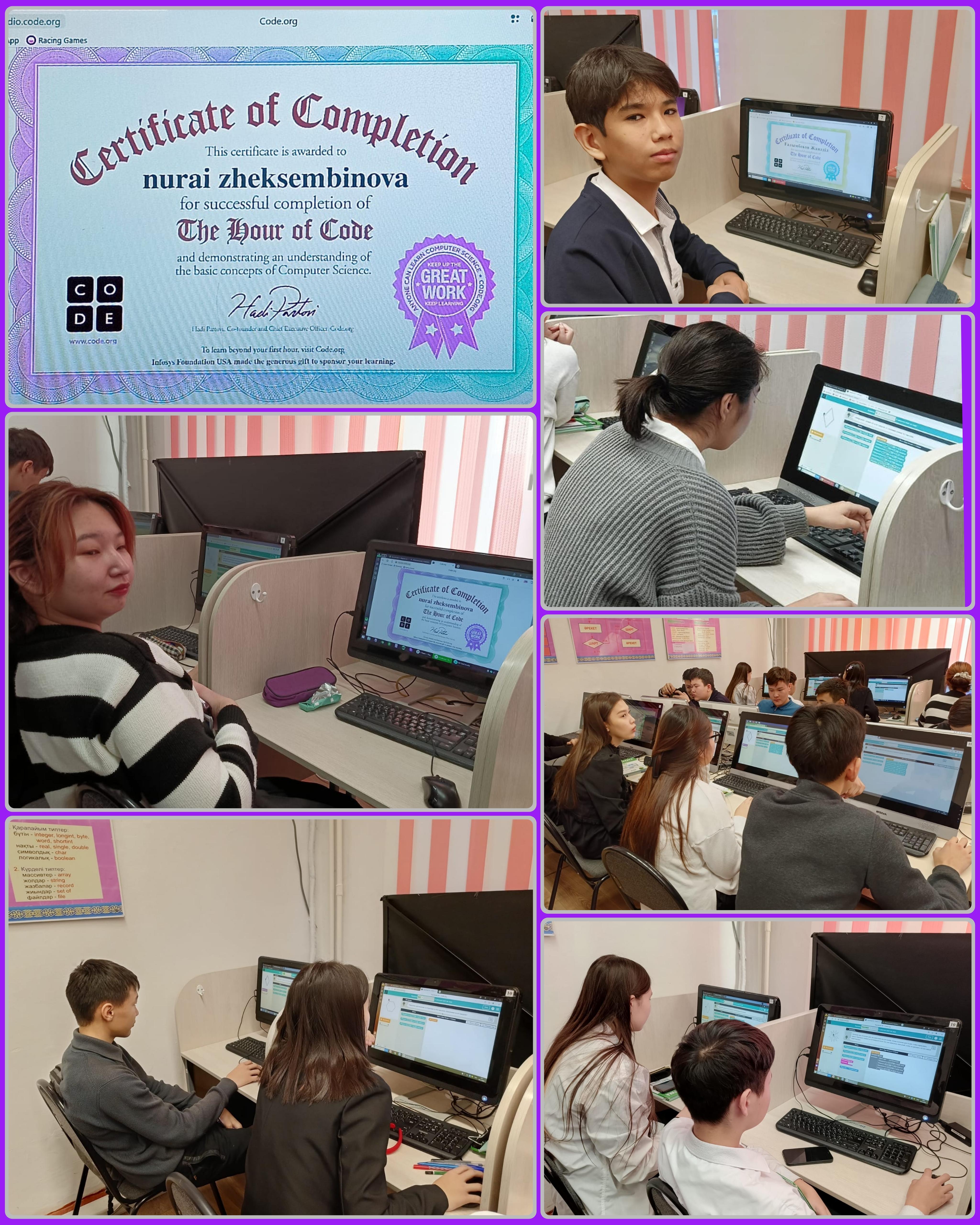 06 декабрь 2023 0 1 2 3 4 5 Код сағаты 2023 "№22 жалпы білім беретін мектеп-лицейі" КММ-де "Қазақстандағы Код сағаты" акциясы аясында 4-10 желтоқсан аралығында 5-11 сынып оқушылары арасында "Кодтау сағаты" өткізілуде. #https://hourofcode.kz #kzhourofcode2023@hourofcode_kz#hourofcodekz