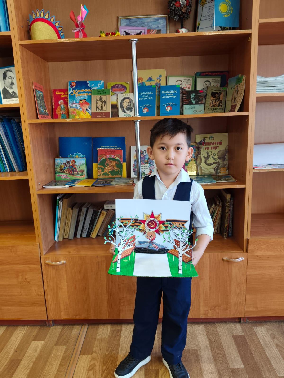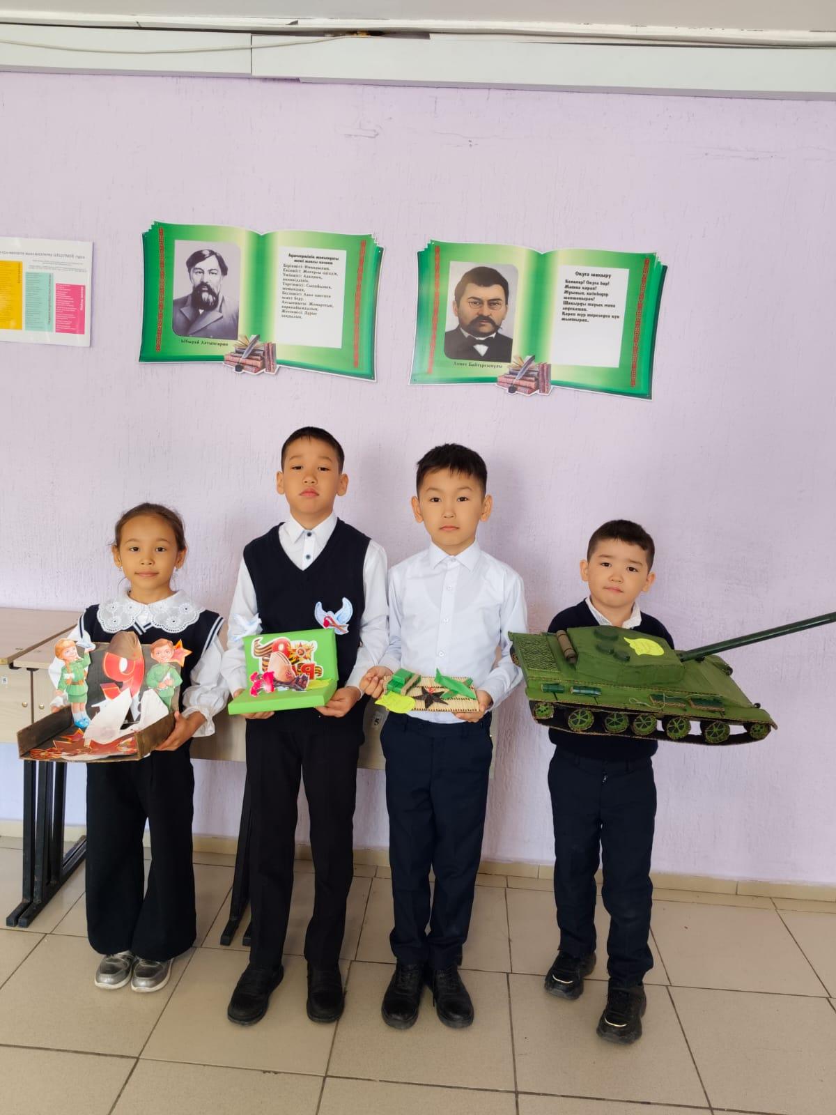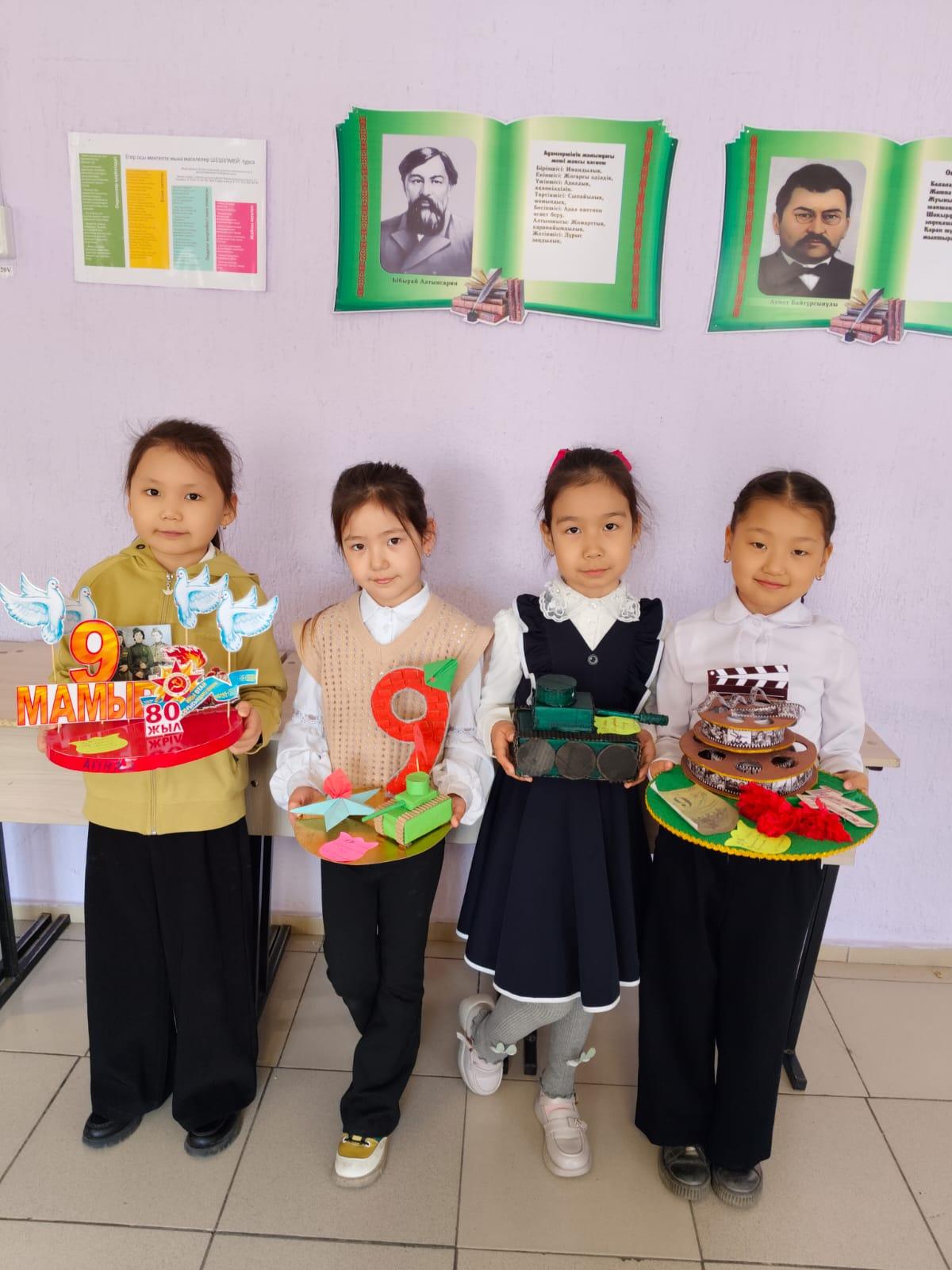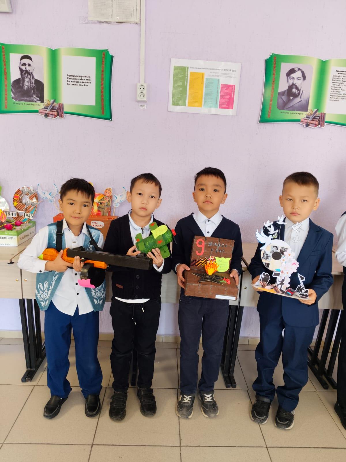 24 апрель 2025 0 1 2 3 4 5 Ұлы Жеңістің 80-жылдығына орай , "Ешкім де, ешқашан да ұмытылмайды" тақырыбында 1-2 сынып оқушыларының қолөнер көрмесі. 1"В" сынып оқушылары.