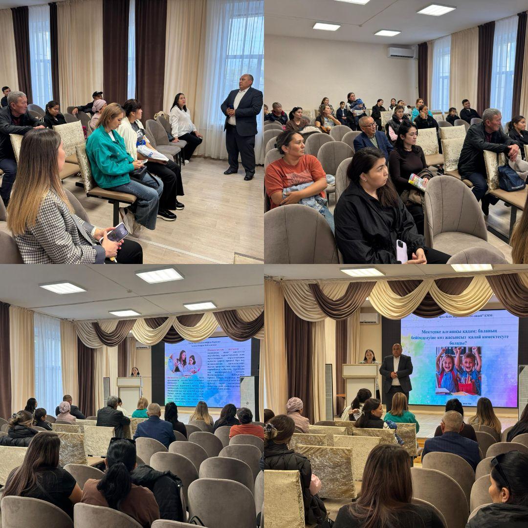 2025 жылдың 03 қыркүйек күні облыстық өңірлік психологиялық орталықтың ұйымдастыруымен облыстық ата-аналар мен педагогтар сессиясы “Бала әлемі: түсіну, қолдау, қорғау” тұжырымдамасы аясында мектебімізде 1-сынып ата-аналарына “Мектепке алғашқы қадам: баланың мектепке бейімделуіне көз жасынсыз қалай көмектесуге болады?” тақырыбында мектеп-лицей педагог-психологтары Рахметоллина М.Қ, Ратаева Г.А жиналыс өткізді.
