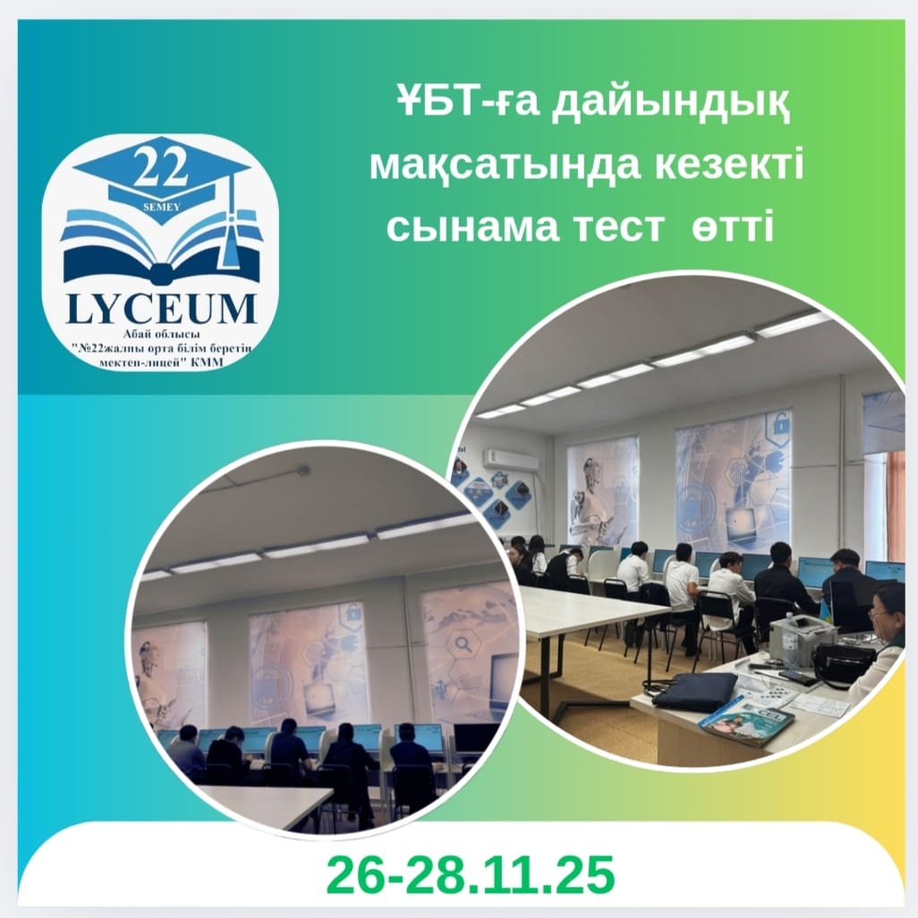 Мектебімізде 26-28.11.25 күндері аралығында 11-сынып оқушылары арасында ҰБТ-ға дайындық мақсатында кезекті сынама тест ұйымдастырылды.