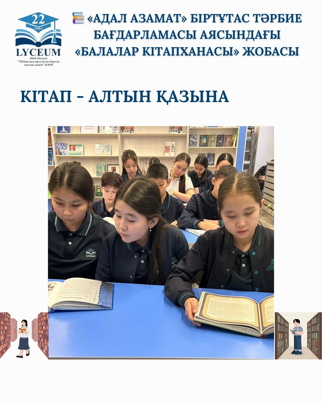 «Адал азамат» біртұтас тәрбие бағдарламасы аясында «Балалар кітапханасы» жобасы жалғасуда! 🌈