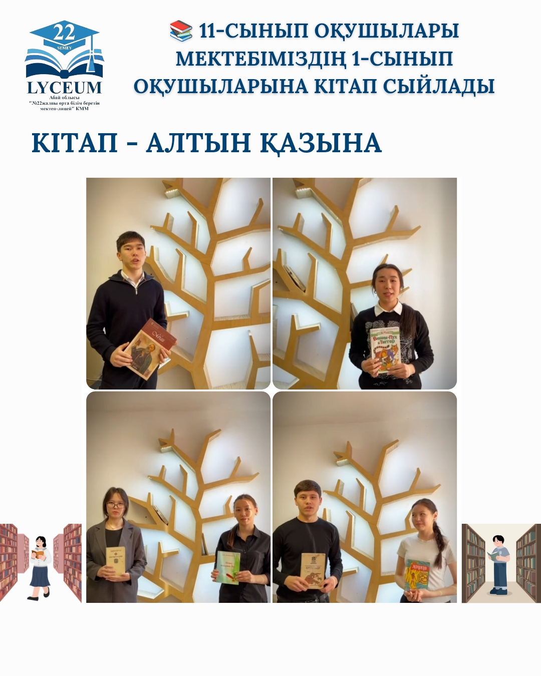 11-сынып оқушылары мектебіміздің 1-сынып оқушыларына кітап сыйлады.