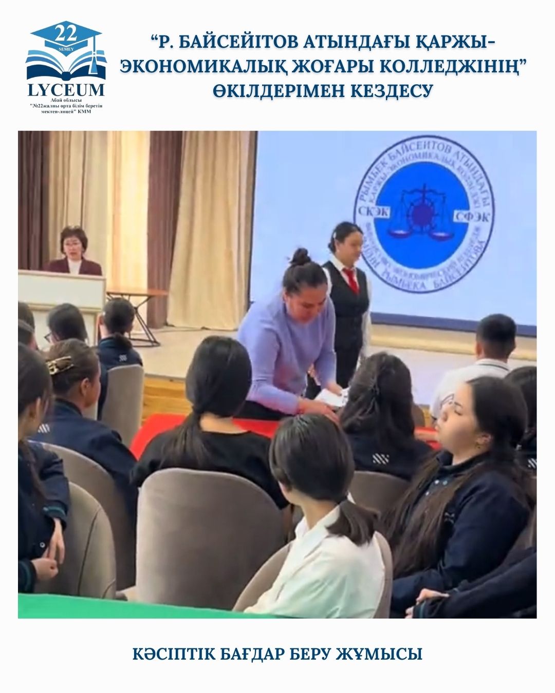 Кәсіптік бағдар беру жұмысының негізгі мақсаты – оқушыларға болашақ мамандықты дұрыс таңдауға бағыт-бағдар беру, олардың қызығушылықтары мен қабілеттеріне сәйкес келетін мамандықтар туралы толық ақпарат ұсыну болды.