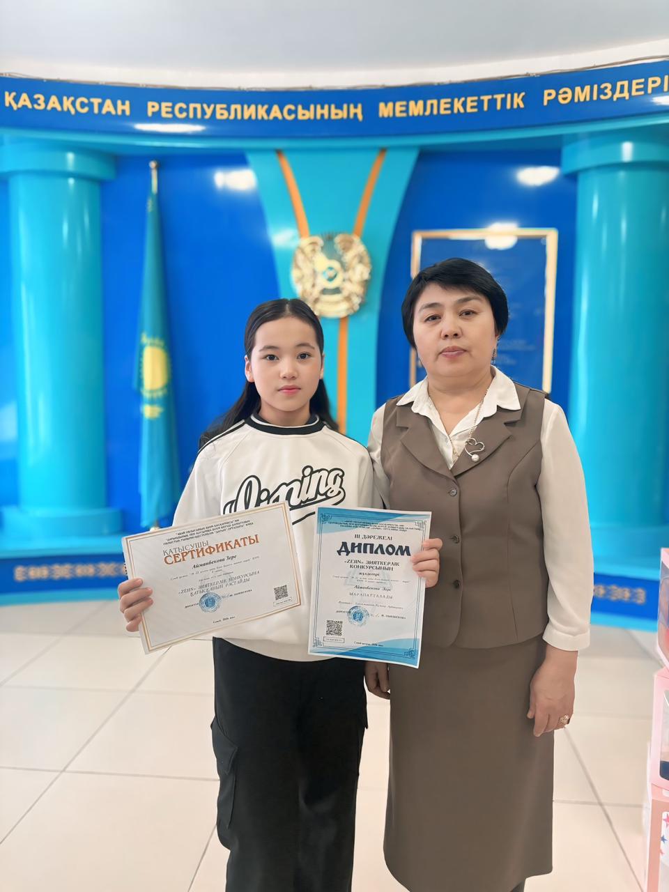 19 февраль 2026 0 1 2 3 4 5 "Zein" облыстық зияткерлік конкурсының ағылшын тілі пәні бойынша 6а сынып оқушысы Айманбекова Зере 3-ші орын Жетекшісі: Есенгельдинова К.А
