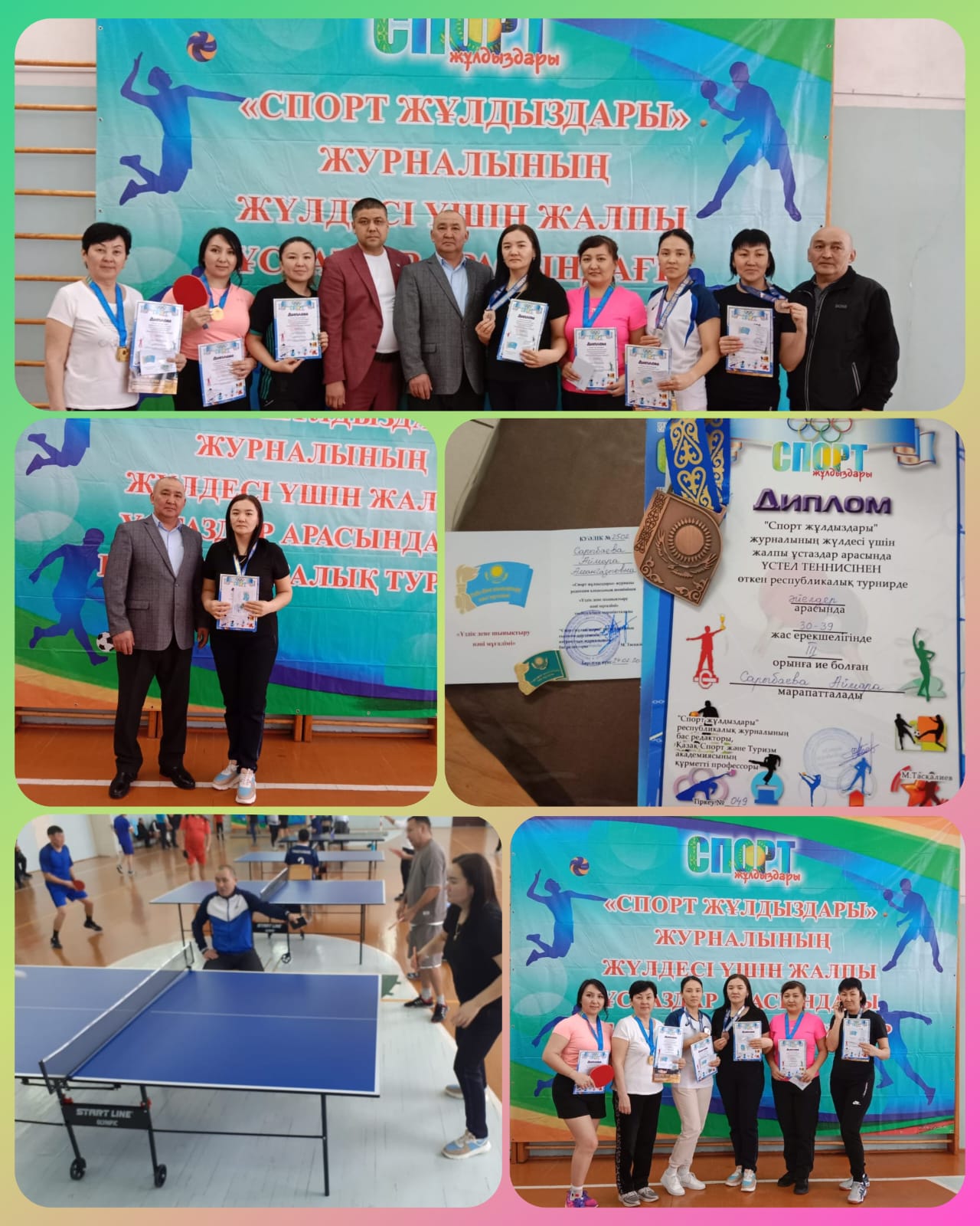 "Спорт жұлдыздары" журналының жүлдесі үшін жалпы ұстаздар арасында ҮСТЕЛ ТЕННИСІНЕН өткен республикалық турнирде САРЫБАЕВА АЙМАРА жүлделі 3-ші орын иеленді.