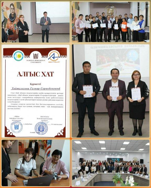 АБАЙ ОБЛЫСЫНДА ИНФОРМАТИКА ЖӘНЕ РОБОТОТЕХНИКА МҰҒАЛІМДЕРІНІҢ І ОБЛЫСТЫҚ СЬЕЗІ ӨТТІ. Жиын мұғалімдердің ІТ құзыреттіліктерін дамытып, тәжірибелерін жетілдіруге арналды. Басты мақсат-өскелең ұрпақты ғылыми-техникалық шығармашылыққа баулу, педагогтердің кәсіби құзыреттілігін арттыру және әдістемелік көмек көрсету. Форумда өз тәжірибесімен бөлісіп шеберлік сағат өткізген мектебіміздің информатика пән мұғалімі Тайтулеуова Гулнар Серикбековна