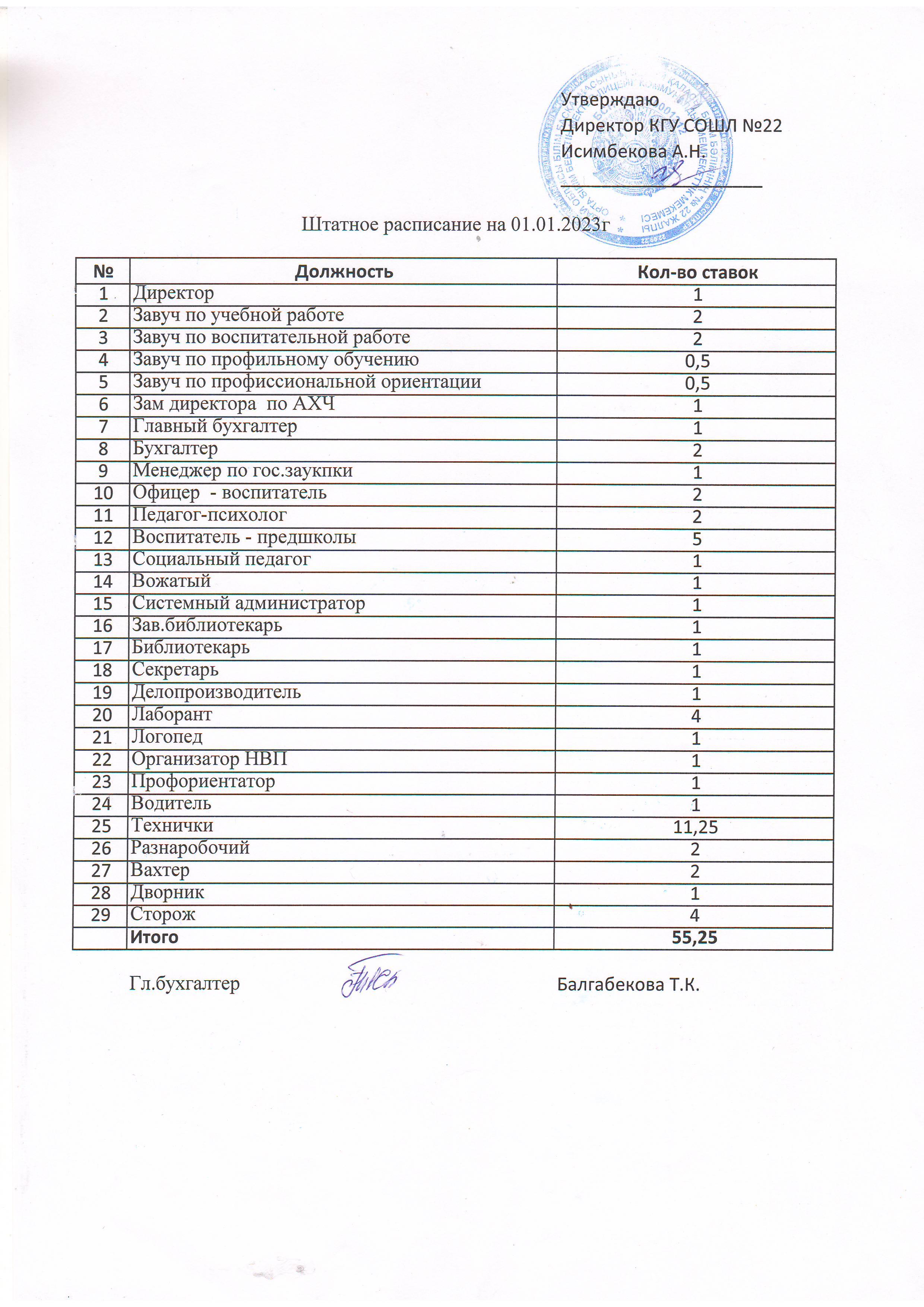 Штатное расписание 01.01.2023 г. » Средняя общеобразовательная школа № 22