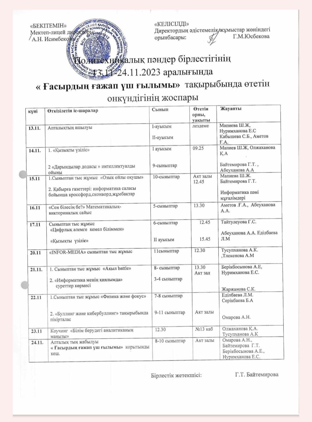 Политехникалық бірлестігінің онкүндігінің жоспары » Средняя общеобразовательная школа № 22