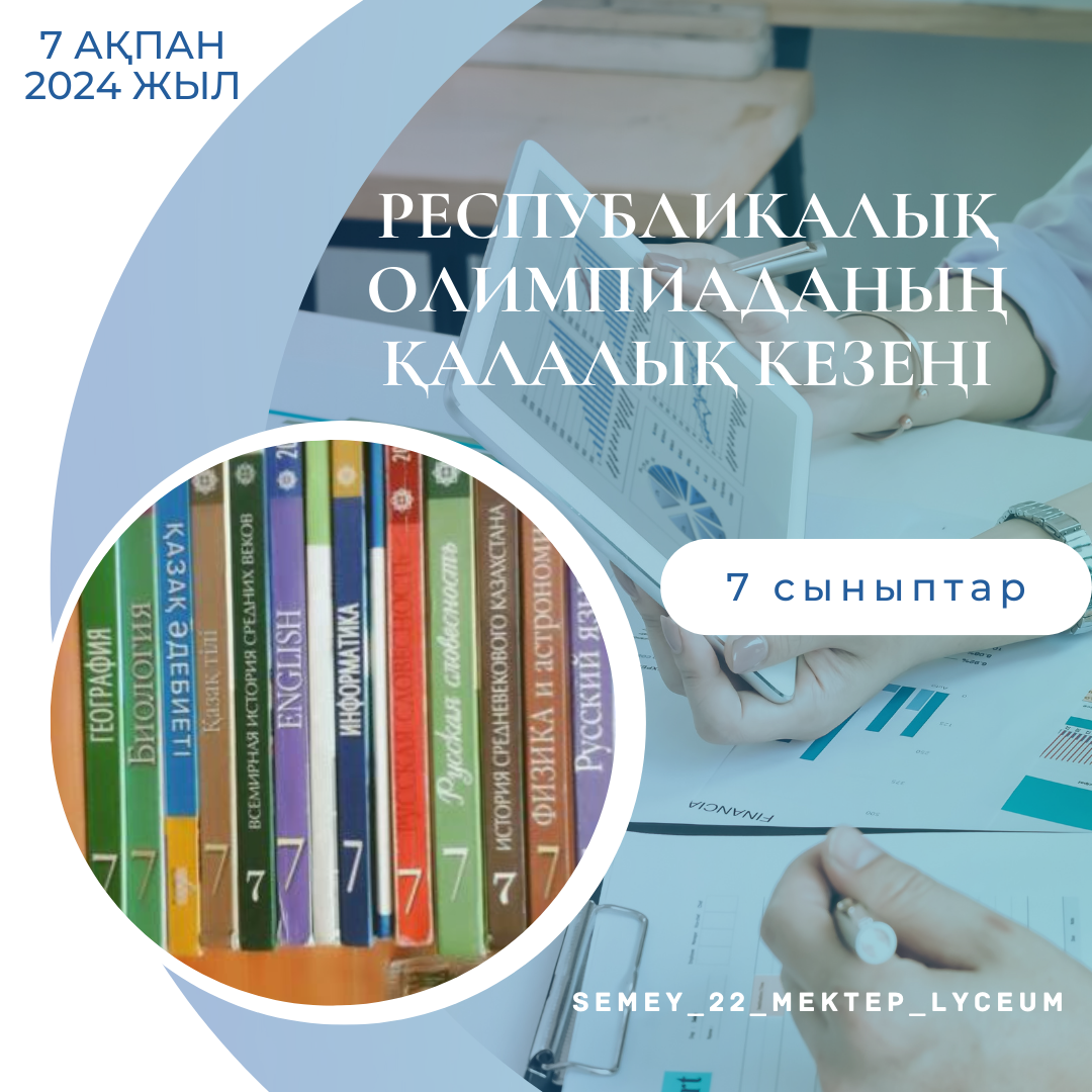 7 ақпан 2024 ж. 7-сынып оқушыларына арналған республикалық олимпиаданың қалалық кезеңіне оқушыларымыз жүлделі орындарға ие болды.