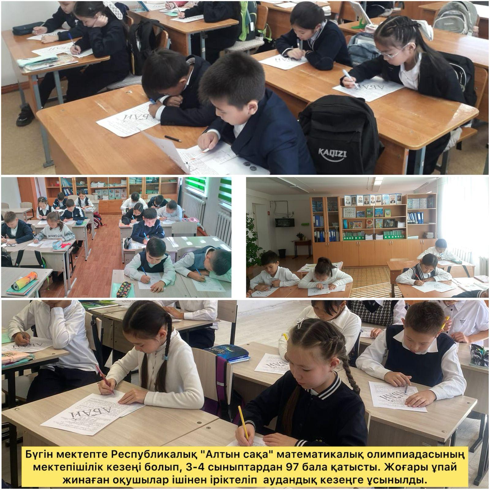 Бүгін мектепте Республикалық "Алтын сақа" математикалық олимпиадасының мектепішілік кезеңі болып, 3-4 сыныптардан 97 бала қатысты. Жоғары ұпай жинаған оқушылар ішінен іріктеліп аудандық кезеңге ұсынылды.