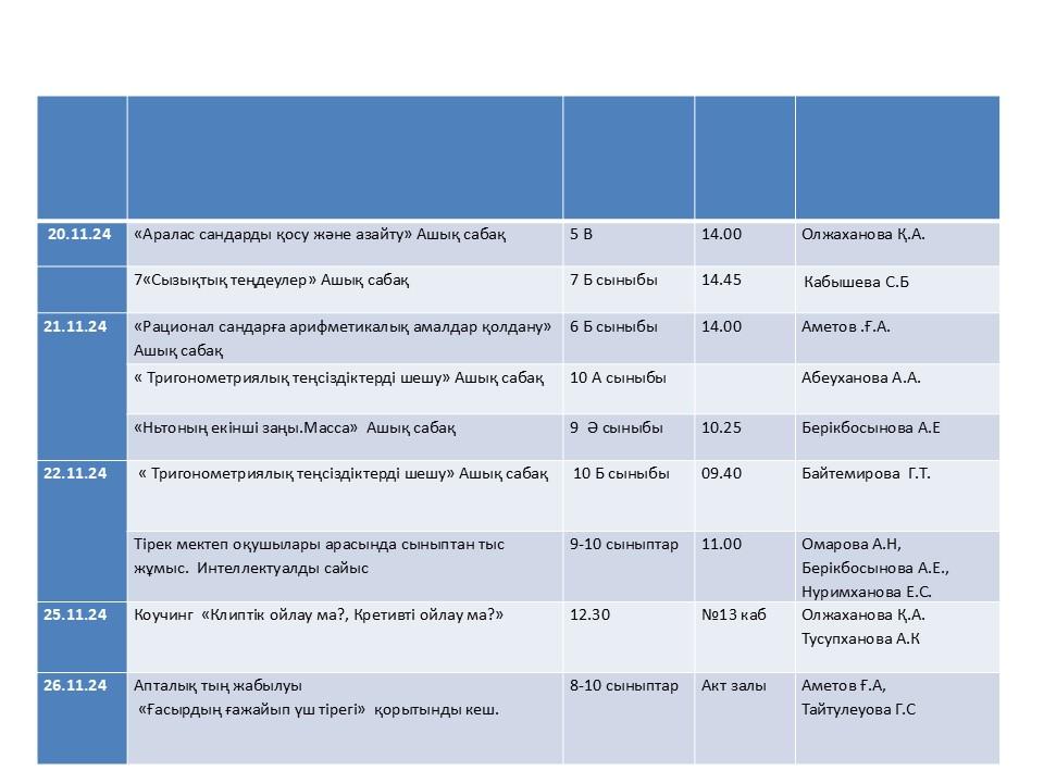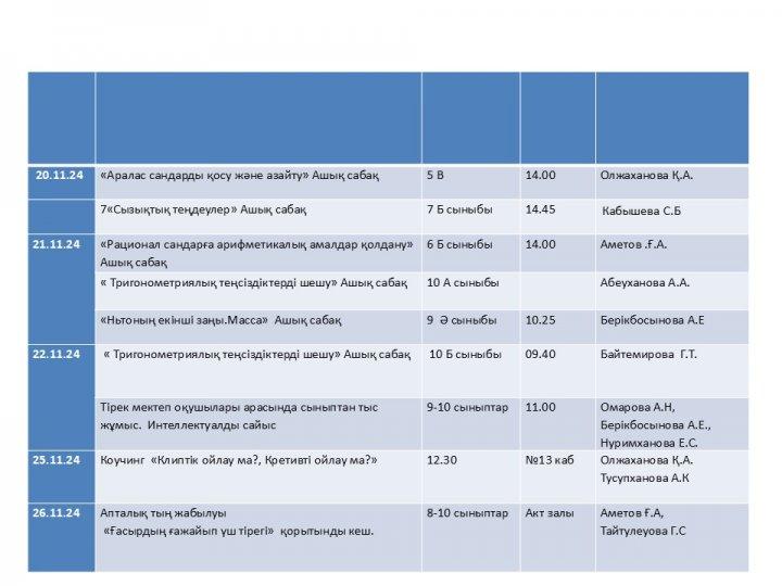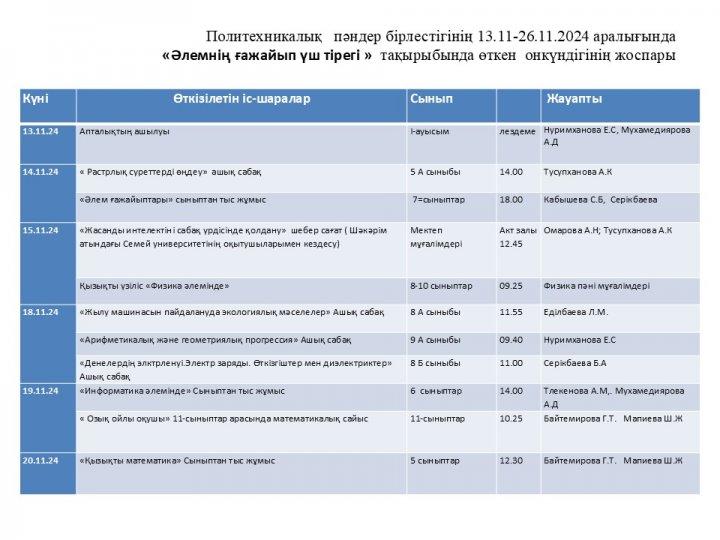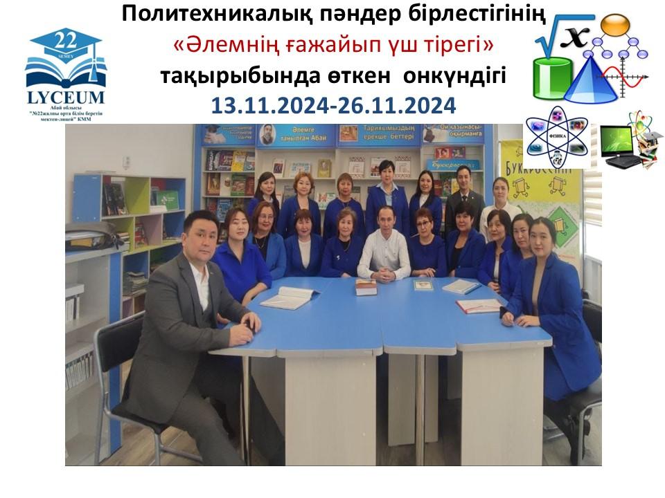 27 ноябрь 2024 0 1 2 3 4 5 Политехникалық пәндер бірлестігінің «Әлемнің ғажайып үш тірегі»тақырыбында өткен онкүндігі 13.11.2024-26.11.2024