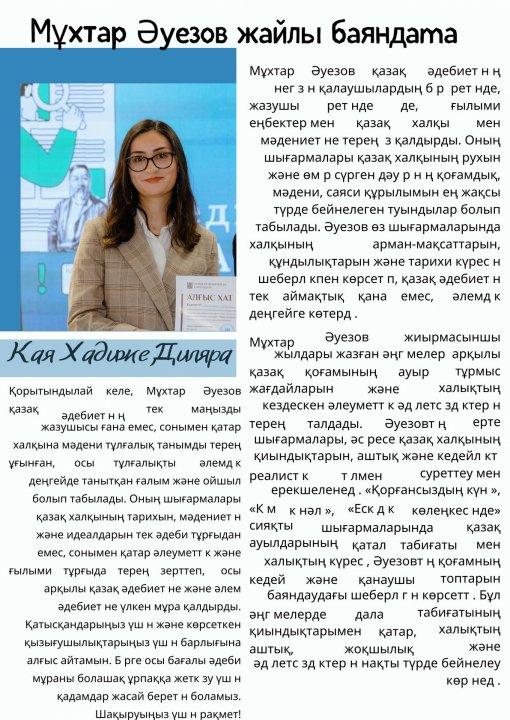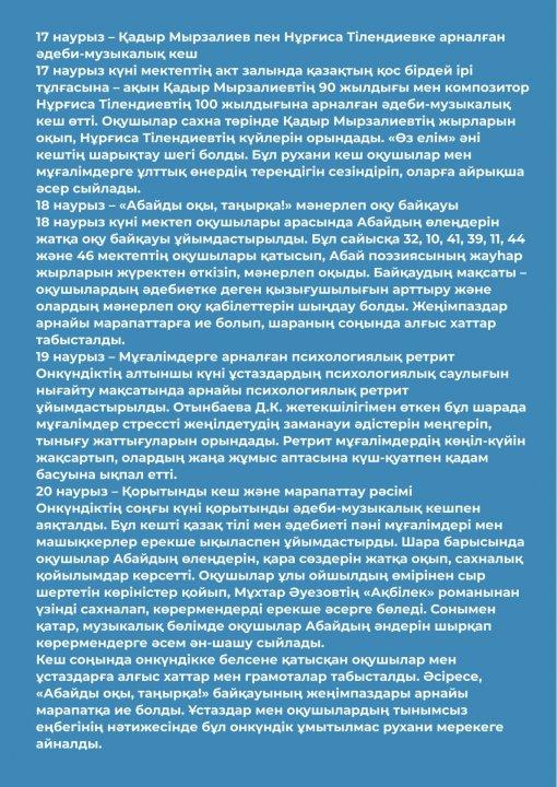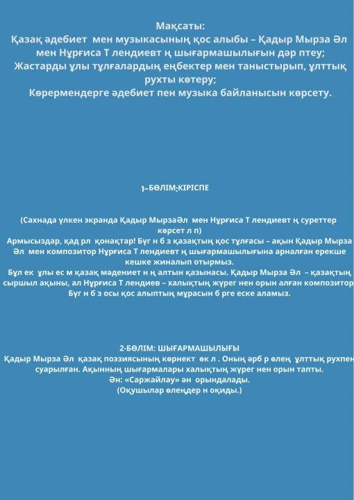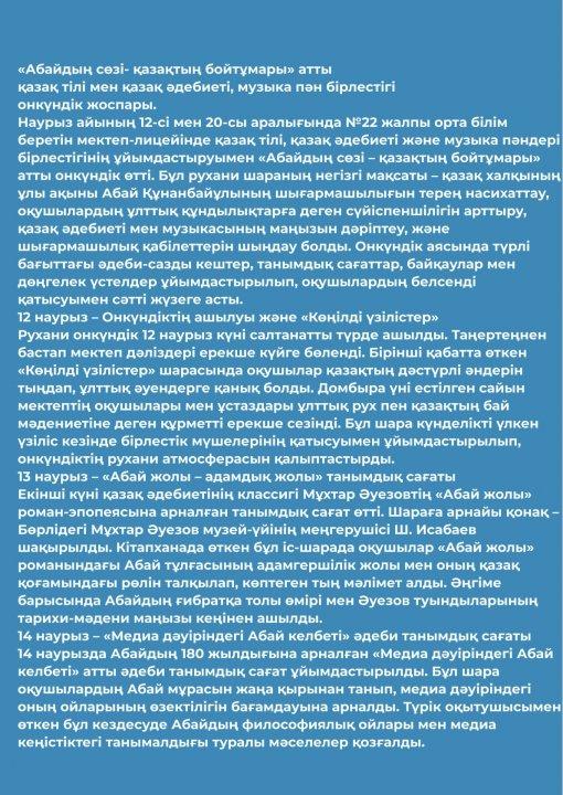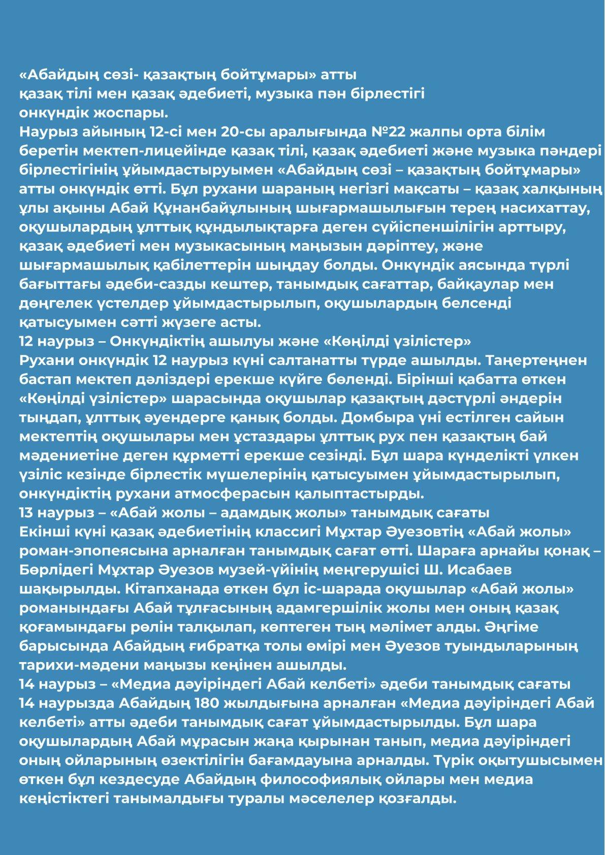 Қазақ тілі мен әдебиеті, музыка пән бірлестігінің онкүндігі » Средняя общеобразовательная школа № 22