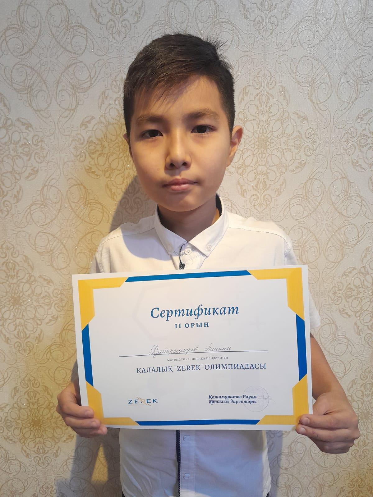 22 мектеп лицейінің 3 Г сынып оқушысы Қайыржанұлы Әлихан қалалық "ZEREK" олимпиадасының математика және логика пәнінен II орын жулдегері болды. 👏🏻👏🏻👏🏻 Жетекшісі Қойлыбаева Шолпан Рымбекқызы Құттықтаймыз! » Средняя общеобразовательная школа № 22