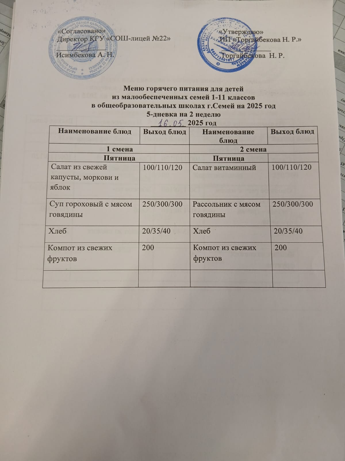 Күнделікті ас мәзірі/ 2 апта/ Жұма/ 1 ауысым жане 2 ауысым » Средняя общеобразовательная школа № 22