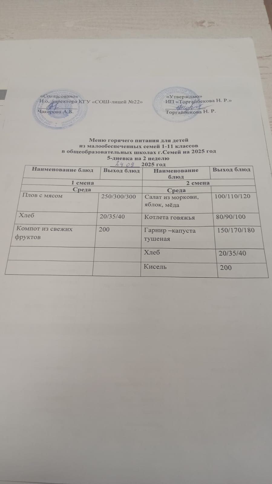 Күнделікті ас мәзірі/2 апта/Сәрсенбі/1 ауысым мен 2 ауысым » Средняя общеобразовательная школа № 22