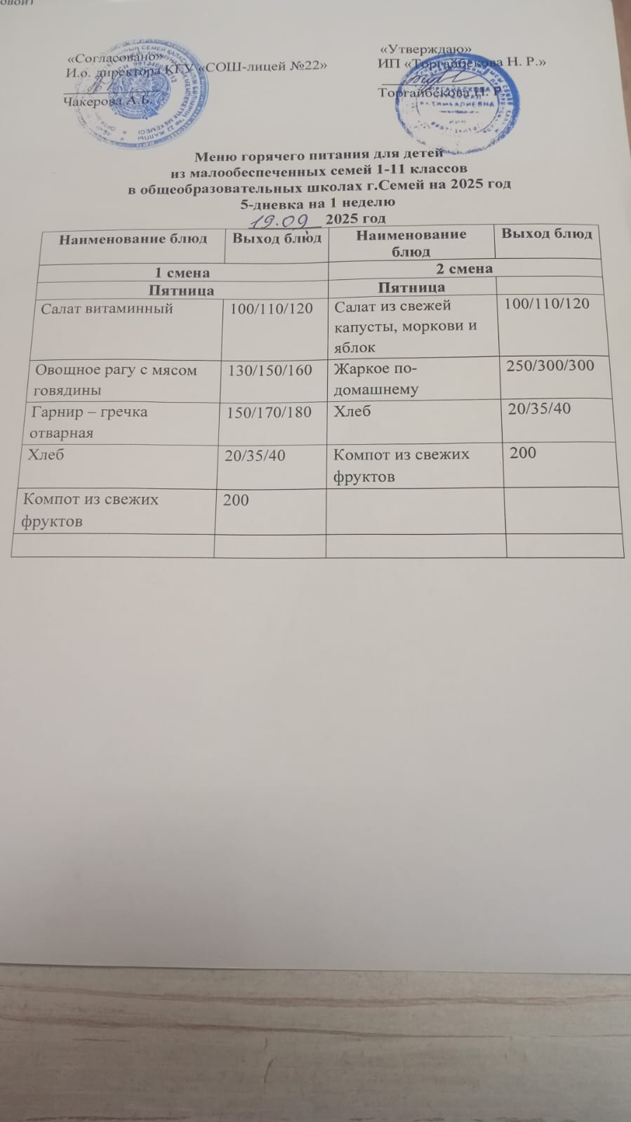 Күнделікті мәзір/1 апта/ Жұма/ 1 ауысым/2 ауысым » Средняя общеобразовательная школа № 22