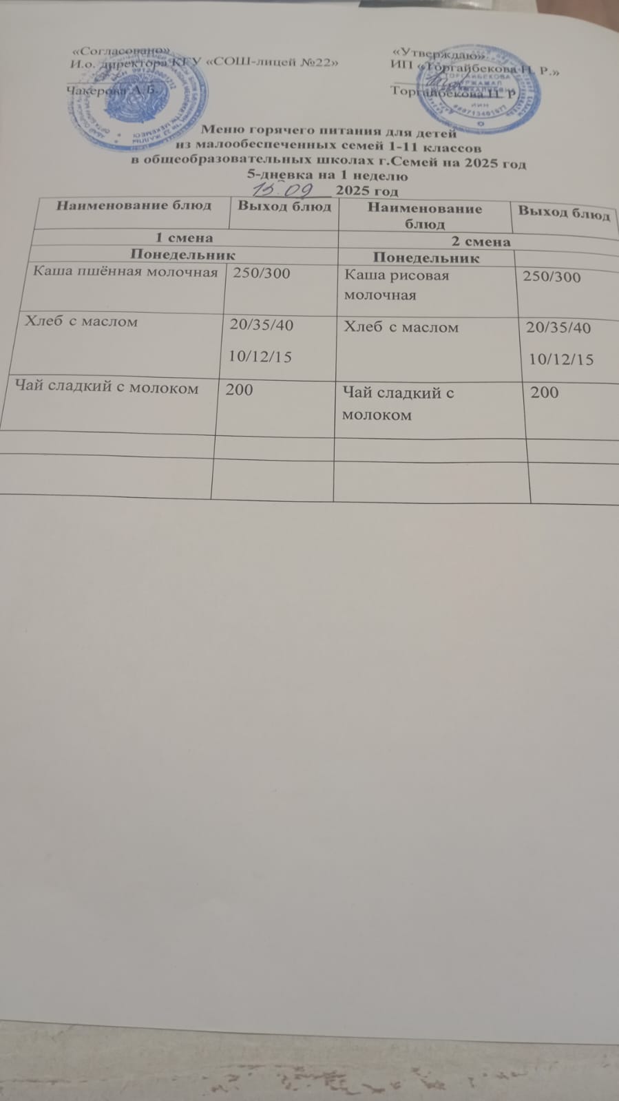 Күнделікті ас мәзірі/ 1 апта/ Дүйсенбі/ 1ауысым мен 2 ауысым » Средняя общеобразовательная школа № 22