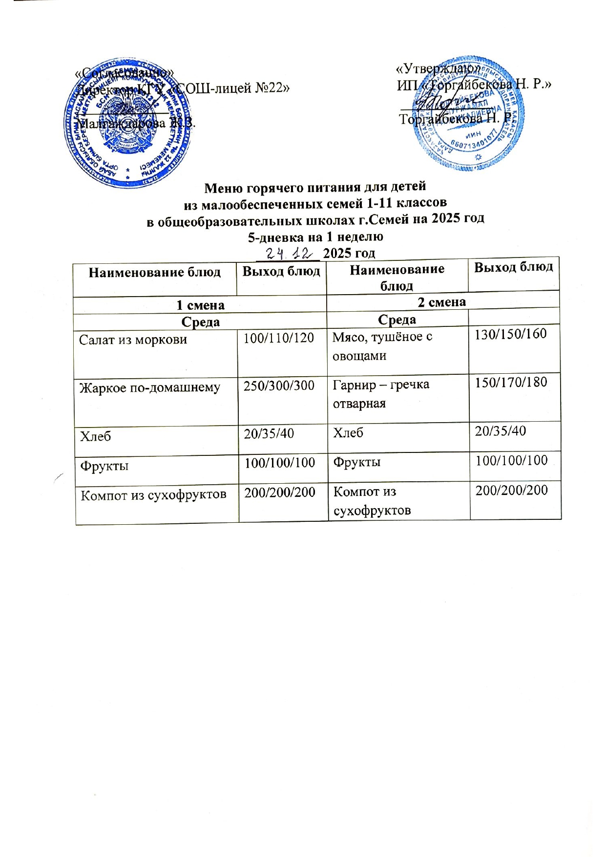 Күнделікті мәзір » Средняя общеобразовательная школа № 22