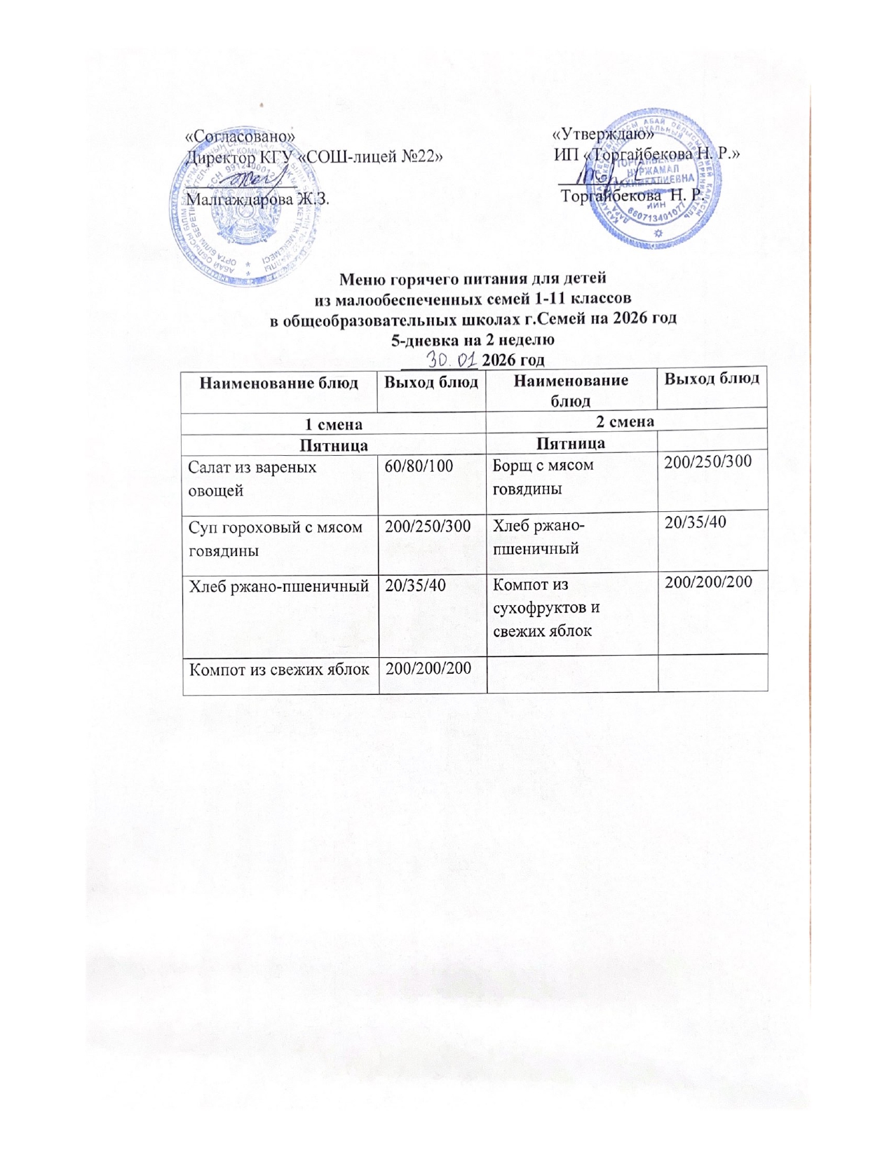 27 январь 2026 Күнделікті мәзір
